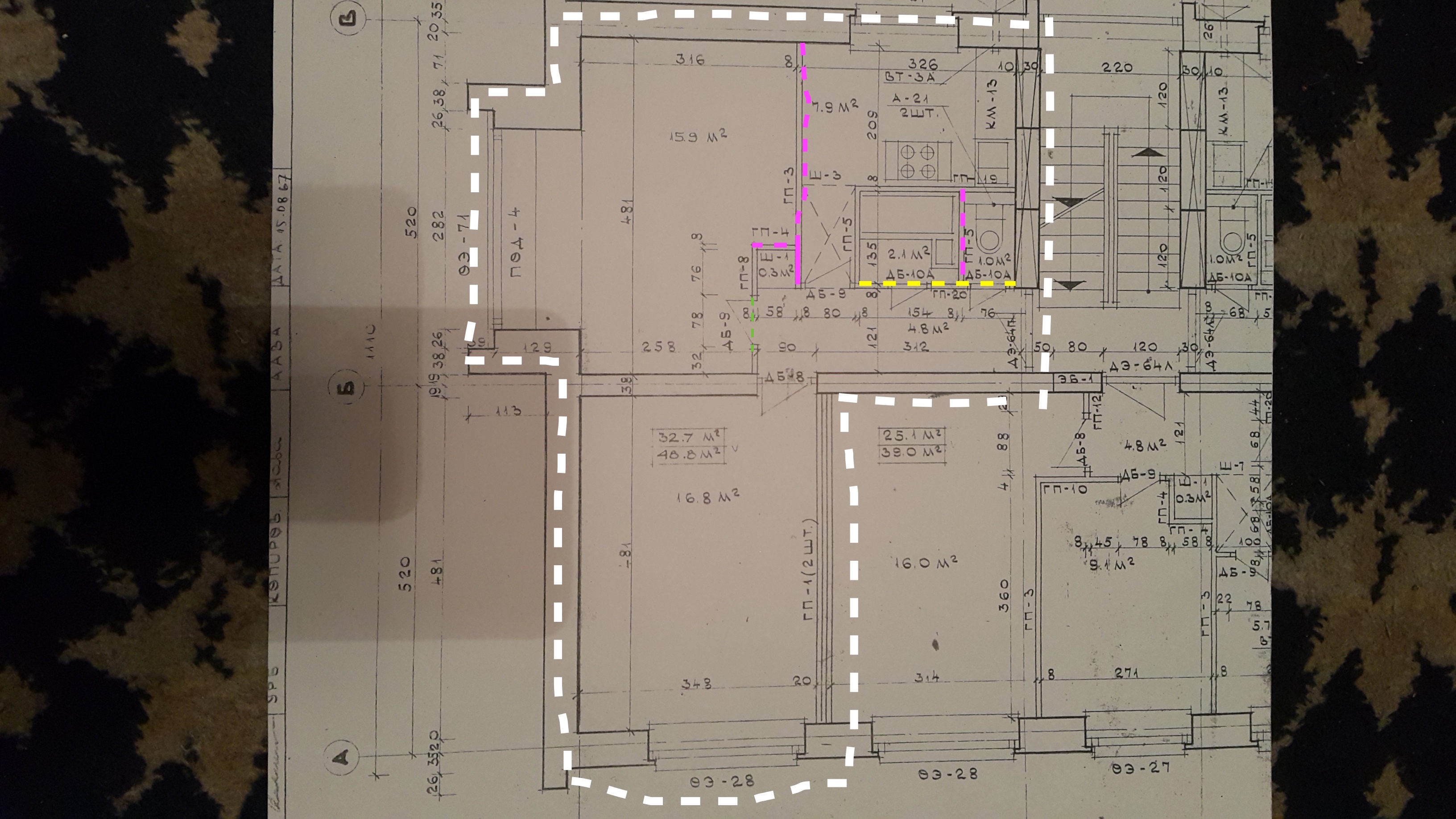 - Kollasega sein mida tuleks ümber ehitada (ukse asukohta muuta, võimalik, et ka vannituba suurendada ehk sein lammutada ja uuesti ehitada).