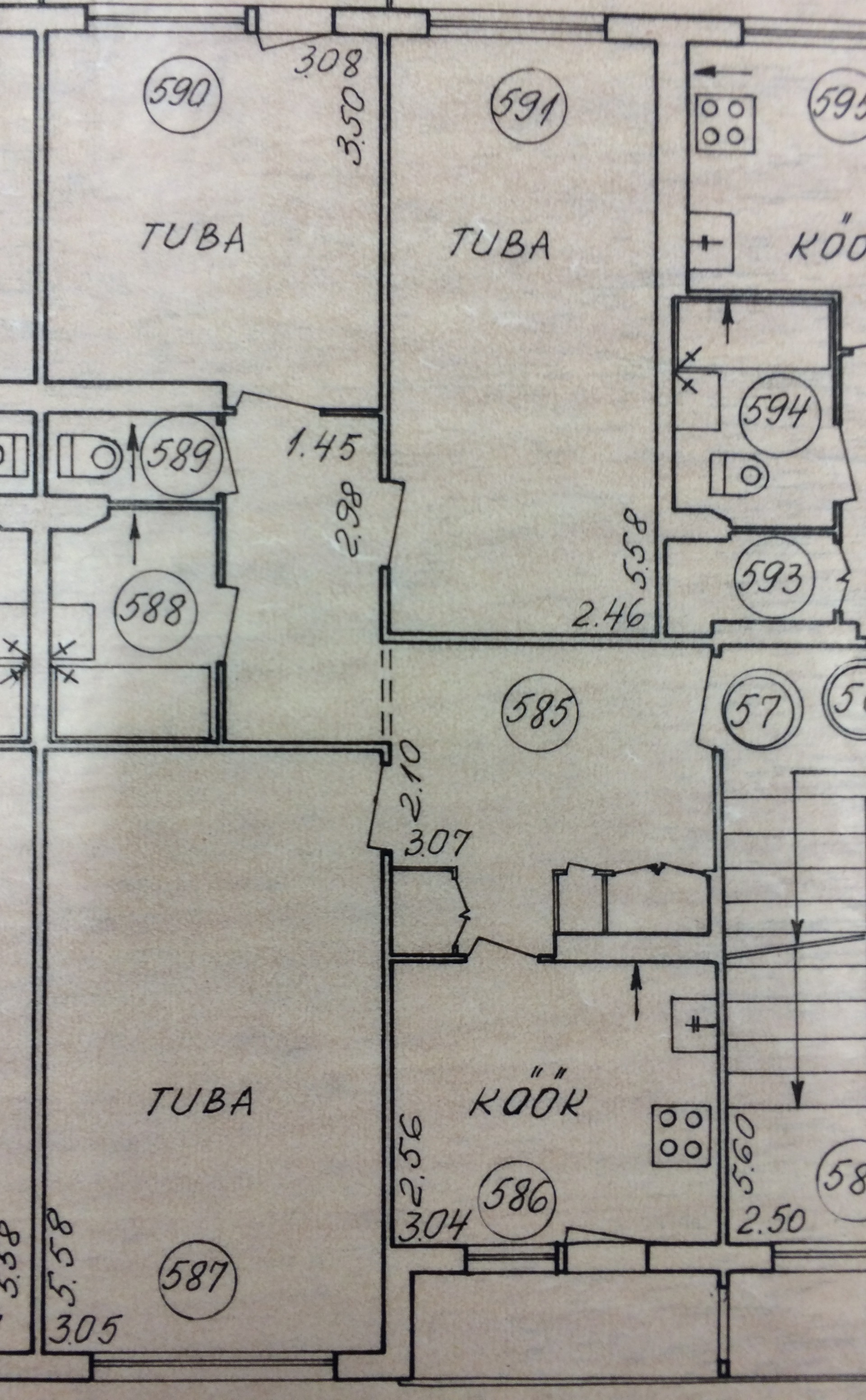 Põrandad: ca 60m2 parkett, ca 4m2 plaat (vannituba/wc)