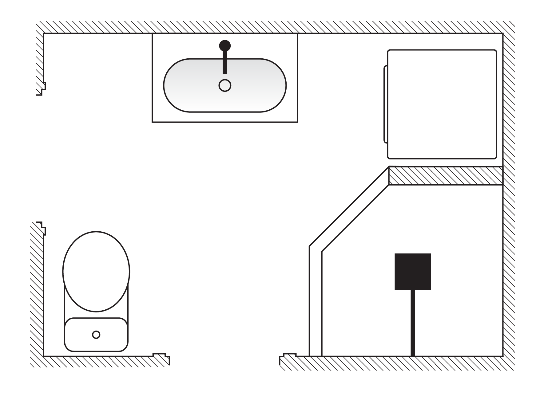 4,5m² vannituba uuepoolses kortermajas. Betoonlaed, plaaditud kipsseinad. Teha on vaja täielik värskenduskuur, samas ükski funktsioon asukohta ei vaheta.