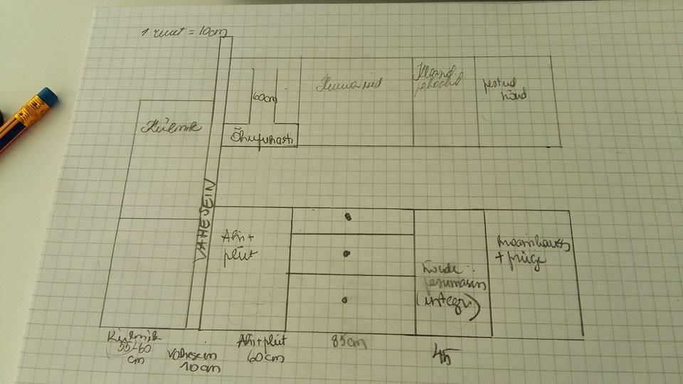 Kokku oleks vaja umbes 7 pistikut (freesimisega). Köök asub välisukse kõrval.