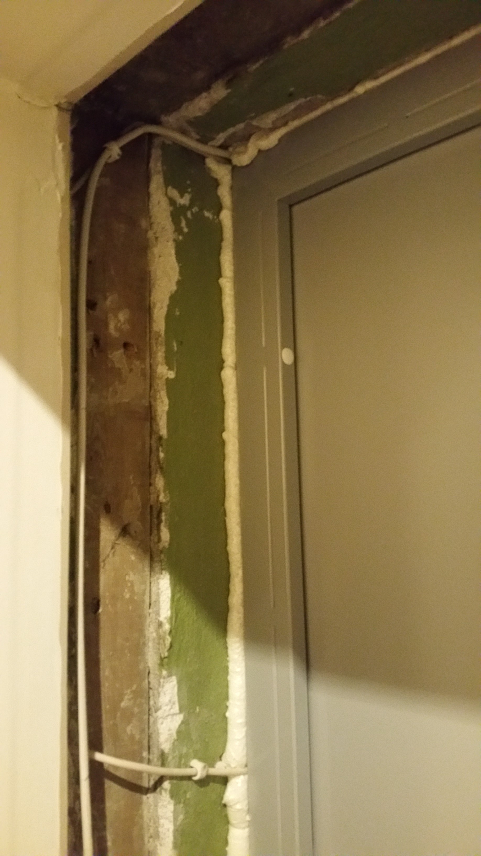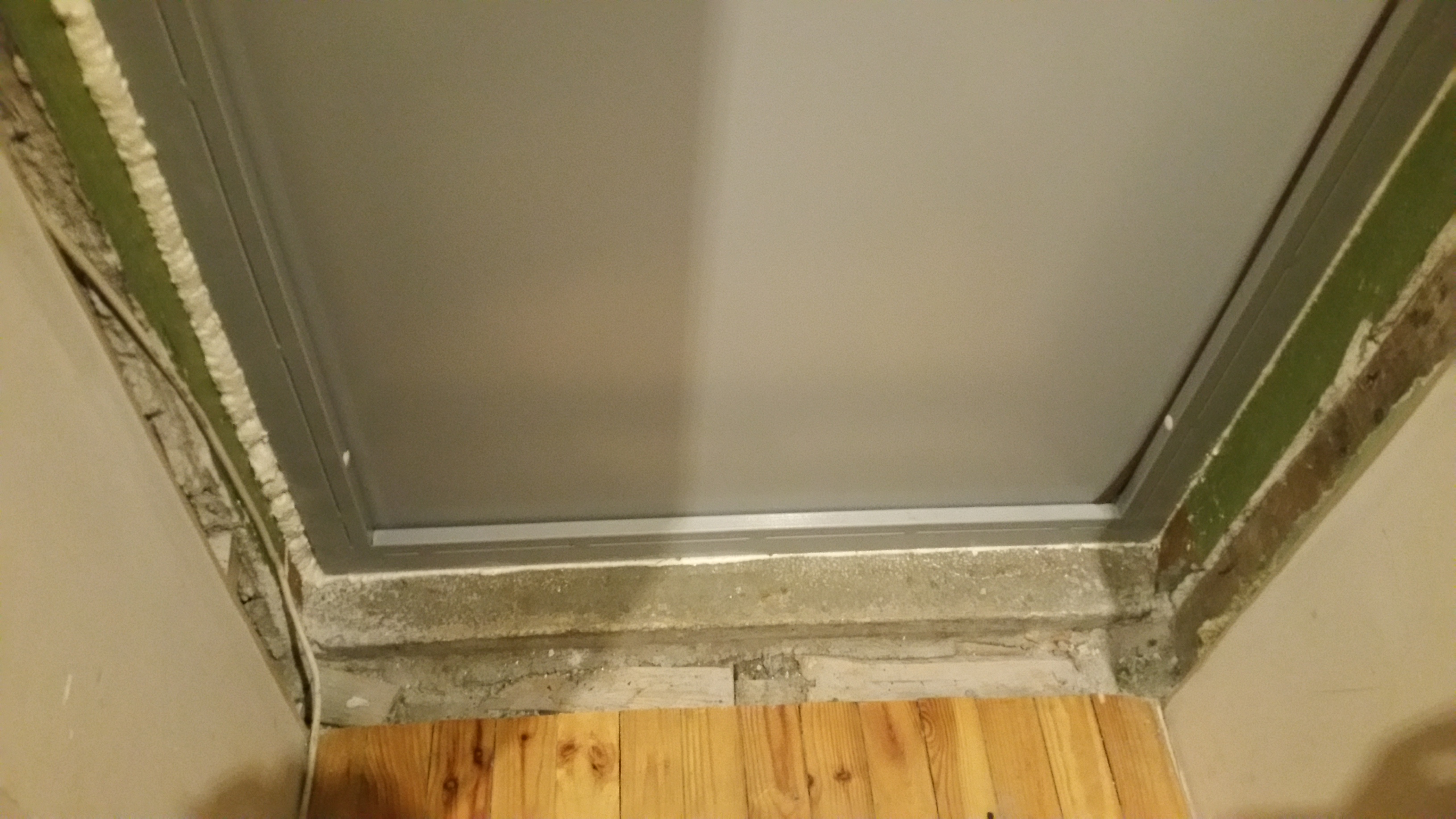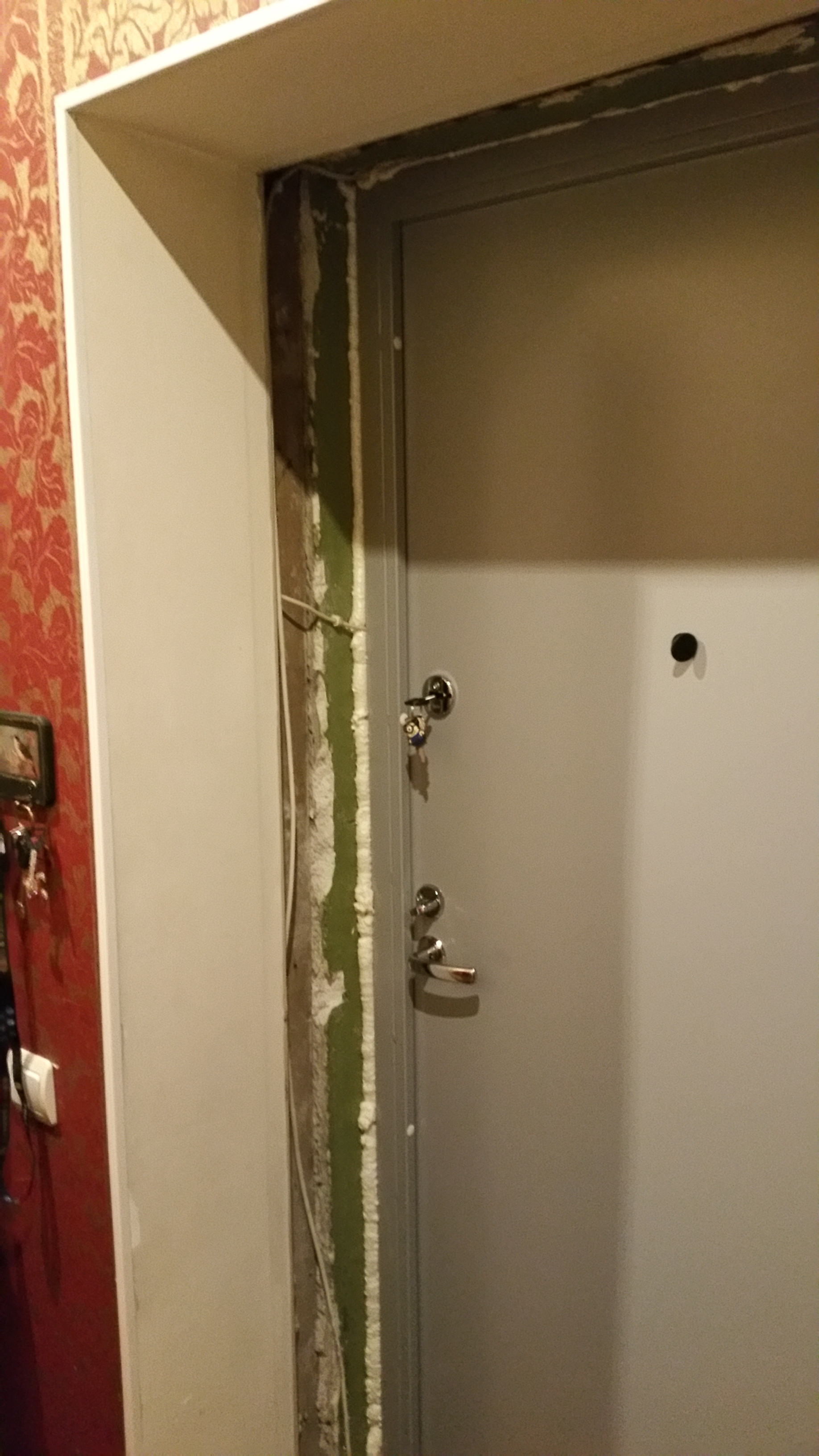 Korteri uus välisuks on ukseavas paigutatud varasemaga võrreldes väljapoole ja seetõttu on jäänud vana kipsist põskede suhtes vahe sisse. Täpsemalt vaata piltidelt.