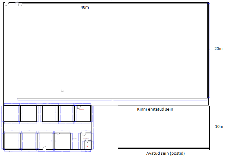 Ühe hoonena 20x40m viilhall ja 10m selle laiendus, millest pool jääb avatud varjualuseks, pool kinni ehitatud talliks.Viilhalli osa seina kõrgus min 4,5m.