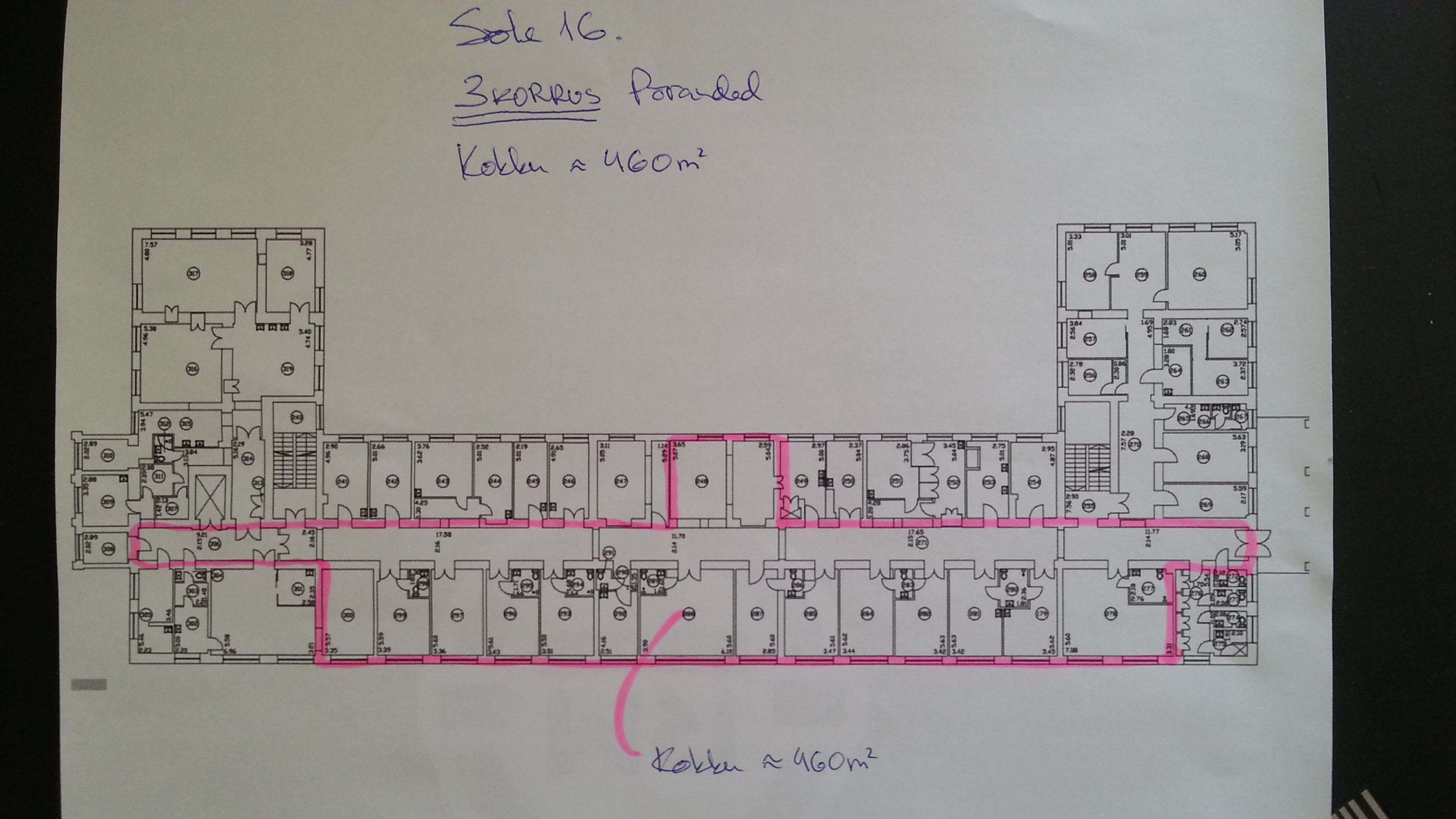 2) Seejärel 3ndal korrusel: maht ca 460 m2