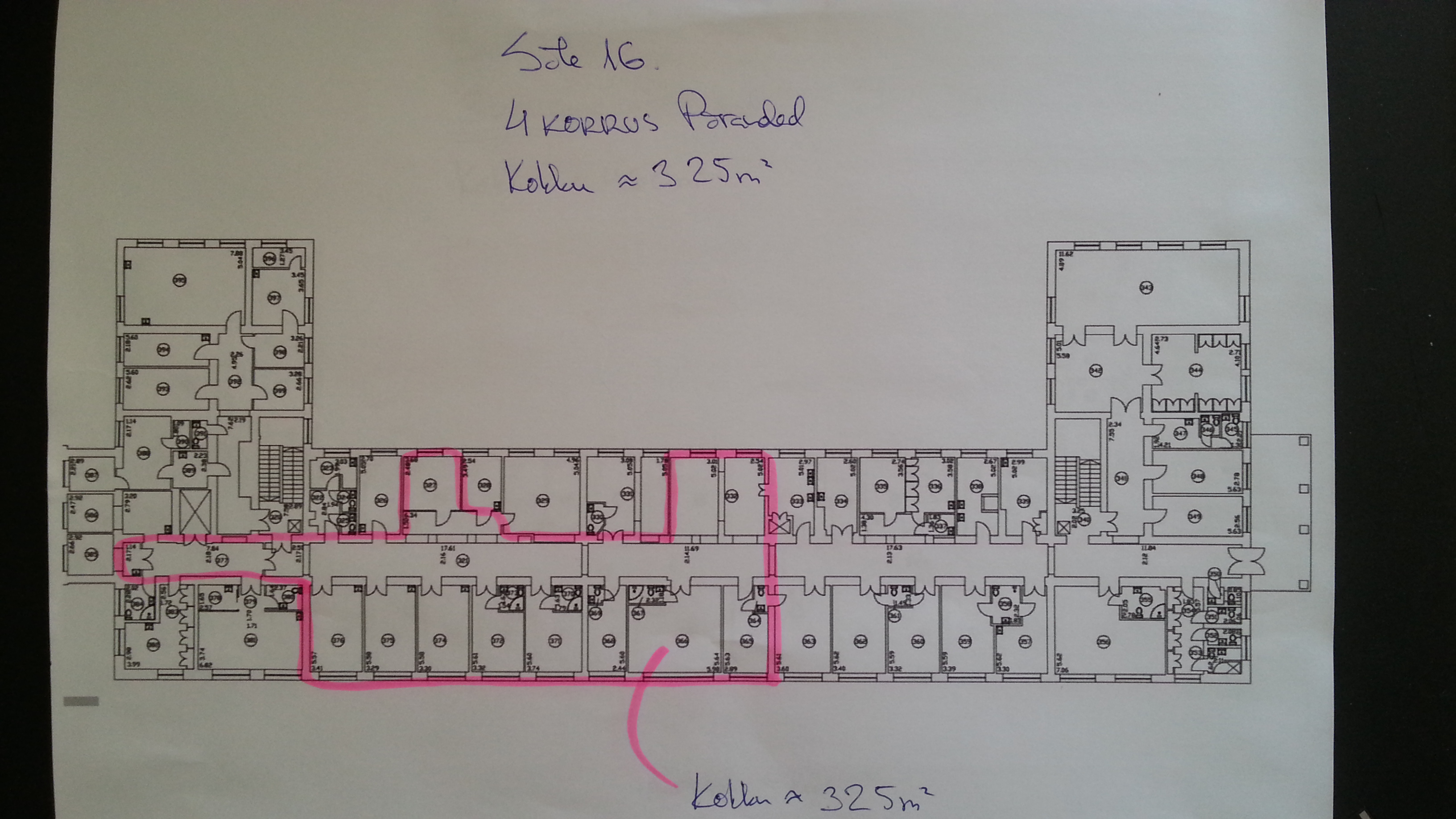 1) Esmalt 4ndal korrusel: maht ca 325 m2