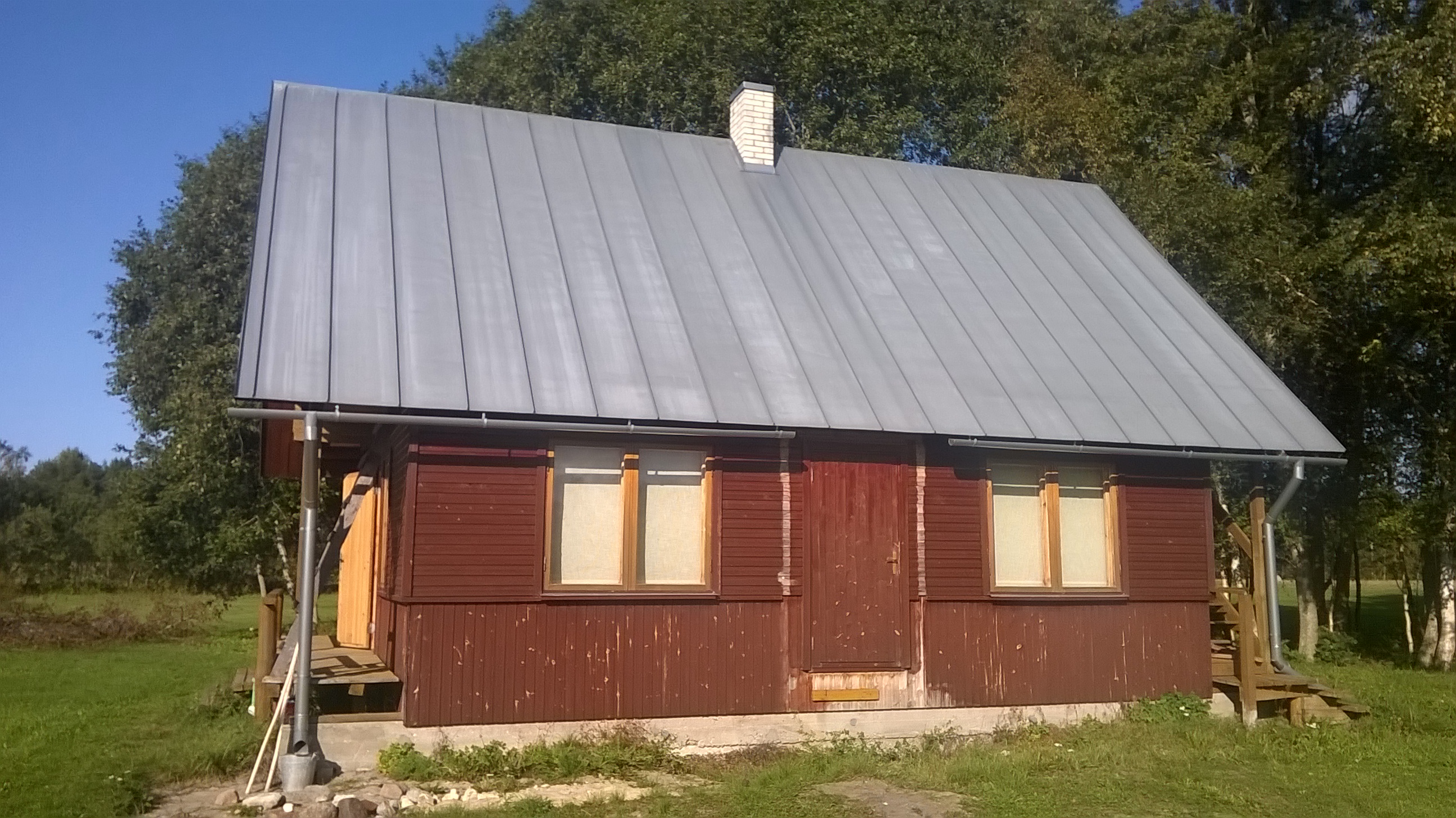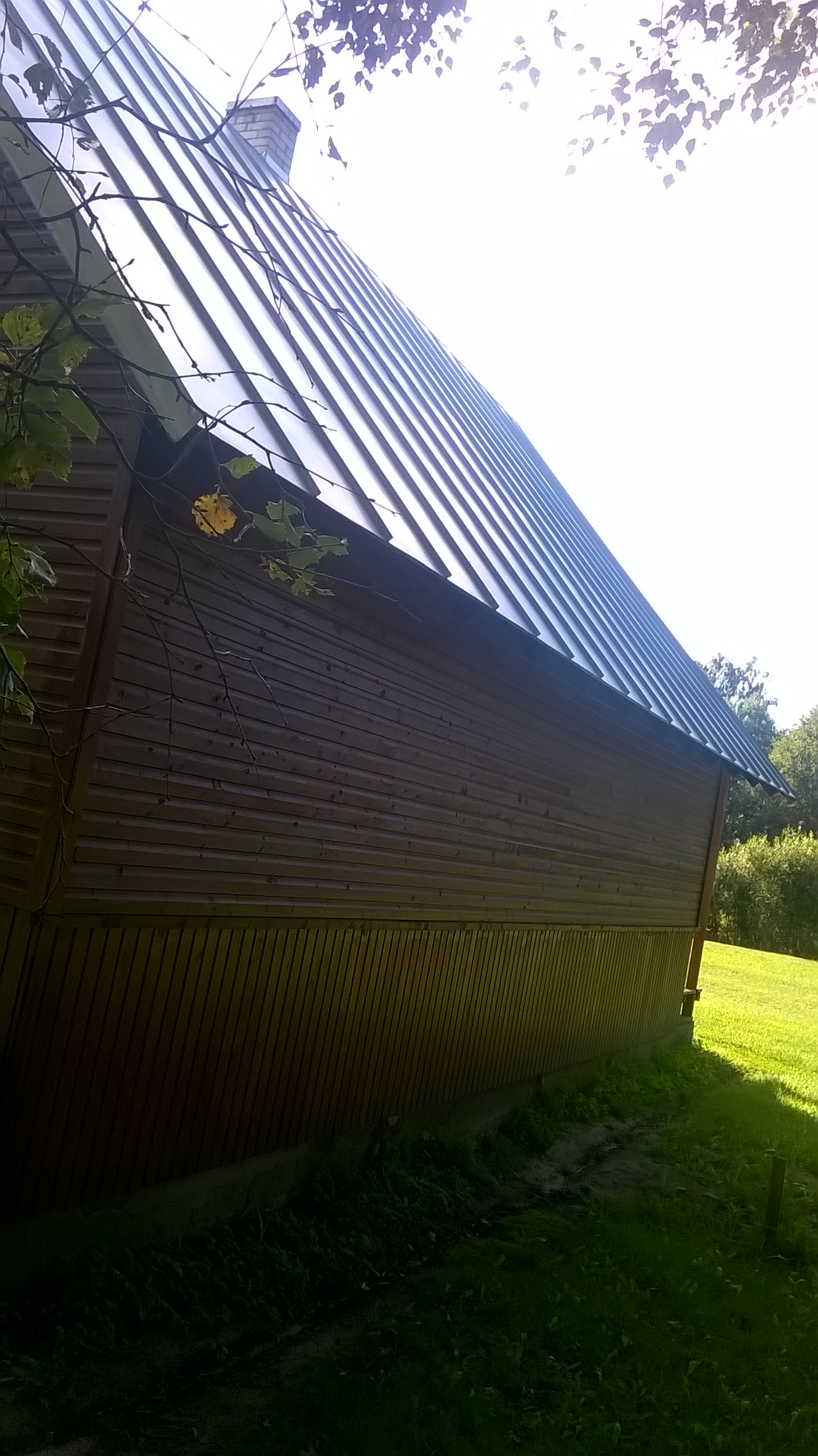 7. Katus tuleks üle värvida tumehalliks. Lisaks paigaldada olemasolevale kamina korstnale korralik krae.