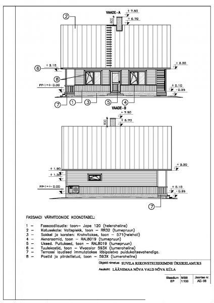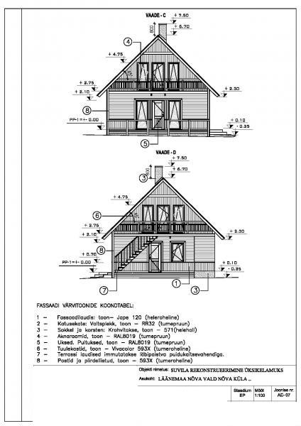 2. Välislaudise puhastamine ja ülevärvimine. Vigased laudise osad asendada uute samasugustega või parandada. Fassaadi värvus heleroheline, liistud, nurgad, aknad valged.
