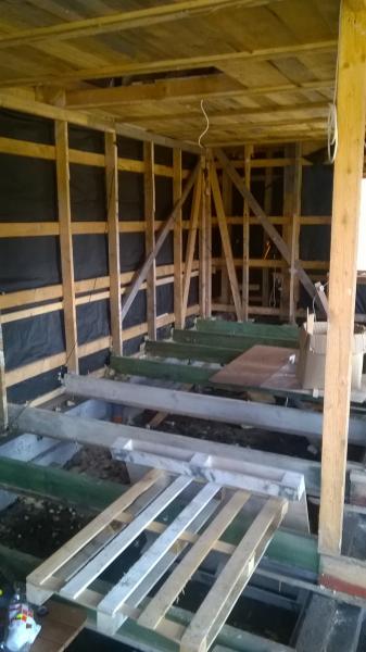8. Põrand jääb olemasolev alt tuulduv, kandevõimet peab parandama, hetkel läbipaine liiga suur. Lisaks vaja kahte luuki põrandasse, et põranda alla pääseda tulevikus. Põranda konstruktsioon: tuuletõkke-laagid 200, roov 50, OSB 22, põrandakips.