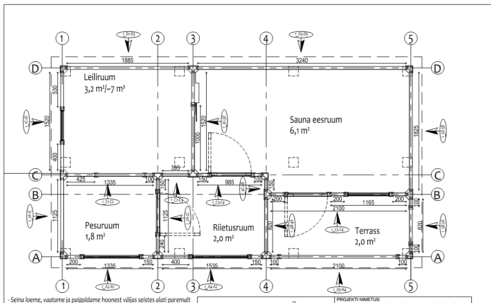 Kahe ruumi vahel (leiliruumi ukse all) on mõeldud trapp, et leiliruumi ja pesuruumi vesi mõlemast ruumist ära voolaks.