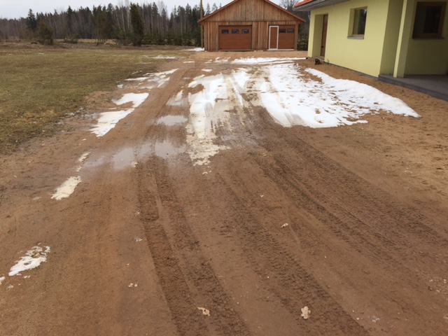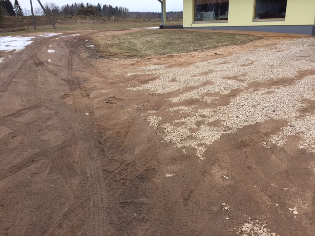 Eramaja juurde mineva sissesõidutee, majaesise parkla ning kõnniteede tänavakivi ja äärekivide paigaldus koos aluspinna töödega. Pinda on orienteeruvalt 660m2. Äärekivi 205jm. Kinnistul on savipinnas. Eelmisel aastal on kivi alla mineva pinnase osast kooritud ca 40cm savi ära ning täidetud liivaga. Tõenäoliselt on vaja nüüd osa liiva eemaldada ja asendada killustikuga. Aluspinna koostise peaks otsustama tegija. Materjalid koos kiviga on tellija poolt. Kivi on mungakivi.