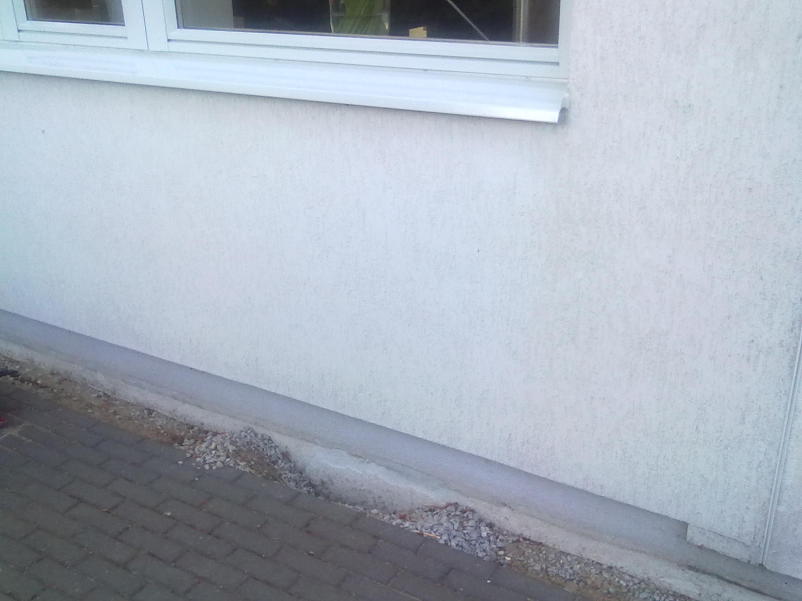 Sokkel on avatud kagu ja loode küljel 25 cm sügavuselt kuni puhta katmata EPS plaadini.Püsiv lahendus teostada vastavalt lisatud sõlmlahendusele (ct20-7), kus alates maapinna piirilt allapoole kuni krohvi ja armeerimiskihi lõpuni kaetakse kogu pind veekindla üle värvitava hüdroisolatsioonimastiksiga Capatect Sockel Flex. Mullkilest kaitsekihti ei paigaldata. Tänavakivi tagasipaigalduse teostab tellija peale tööde lõppu.