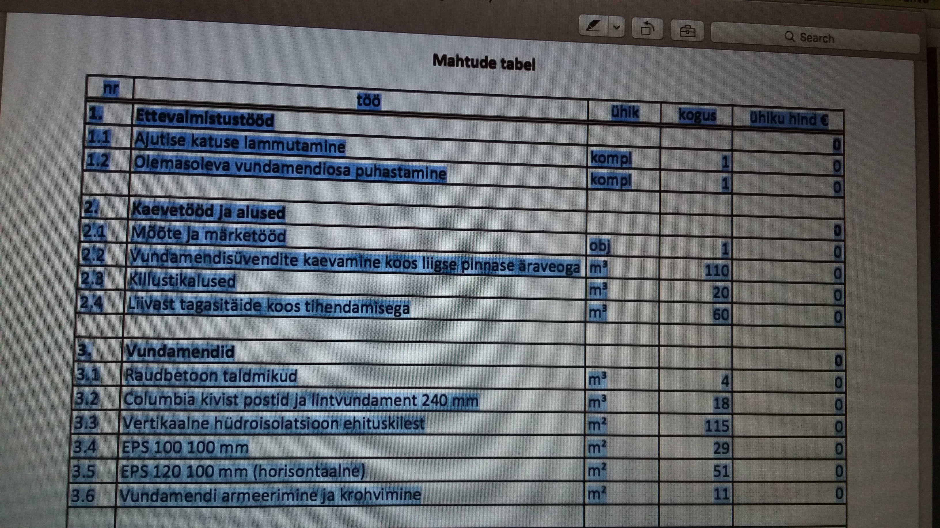 | Ehitusmaterjalid: | Töö tegija poolt |