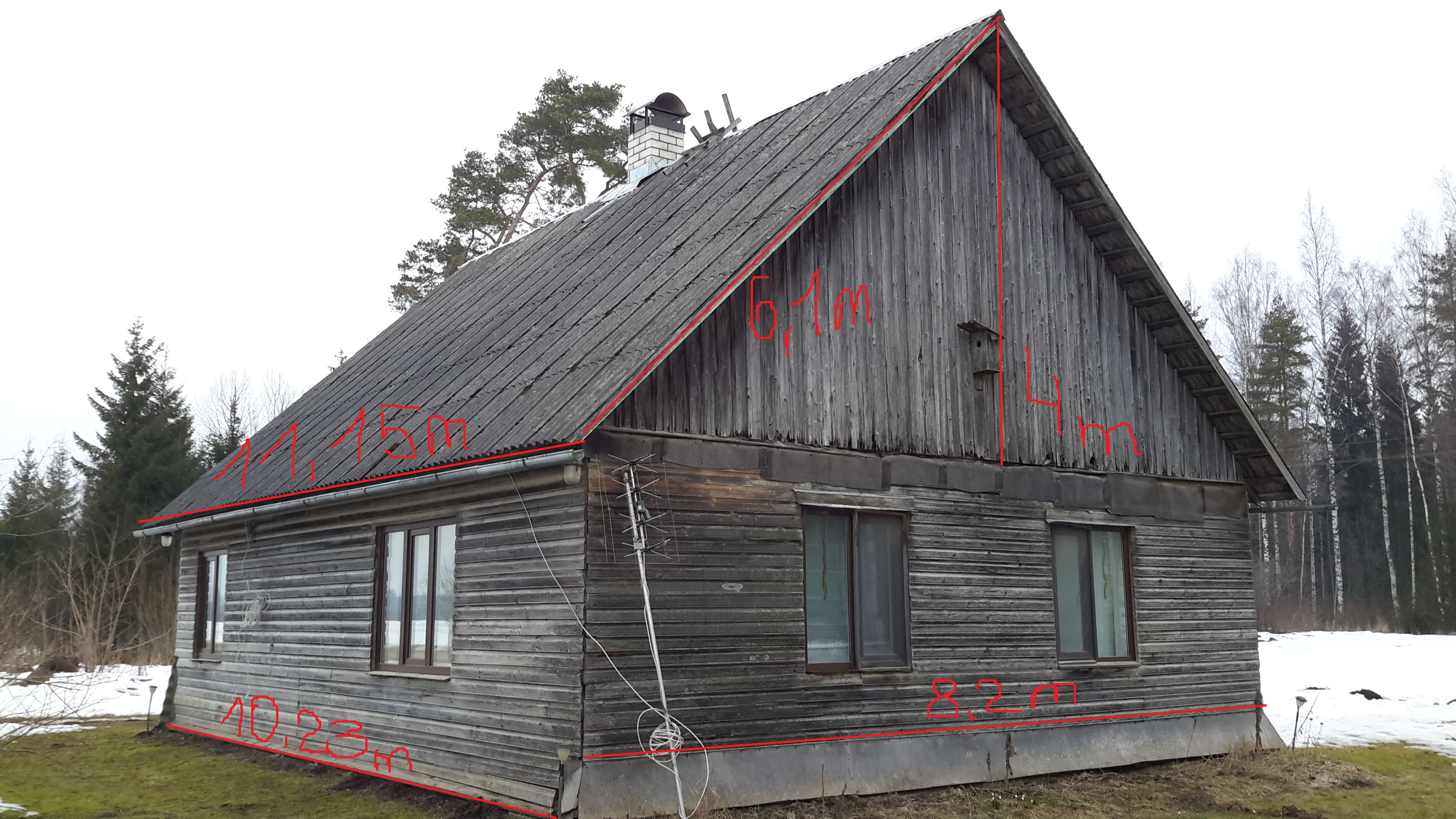 Hetkel katus on 150 ruutmeetrit, soovime juurde ehitada varikatust umbes 10 ruutmeetrit.