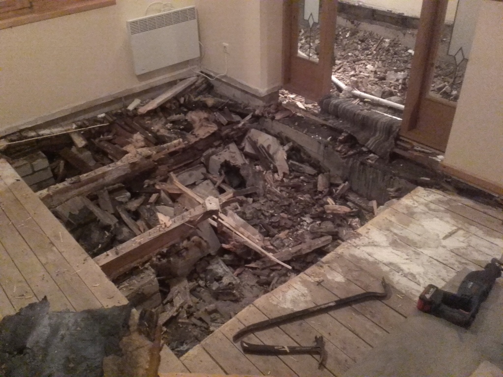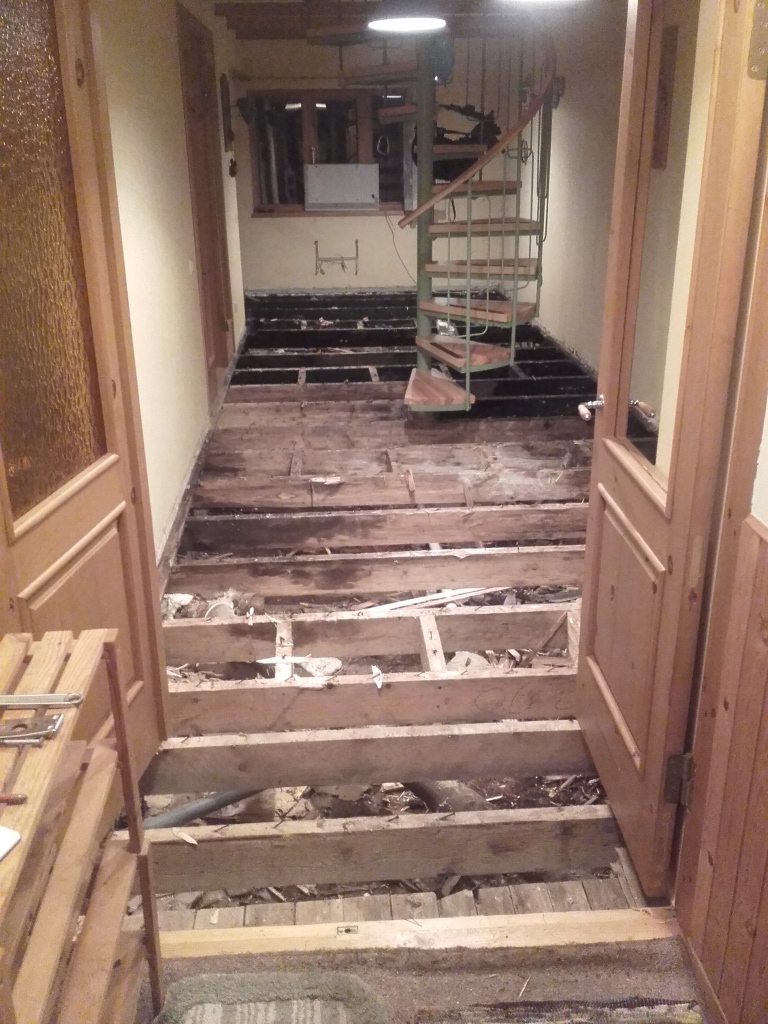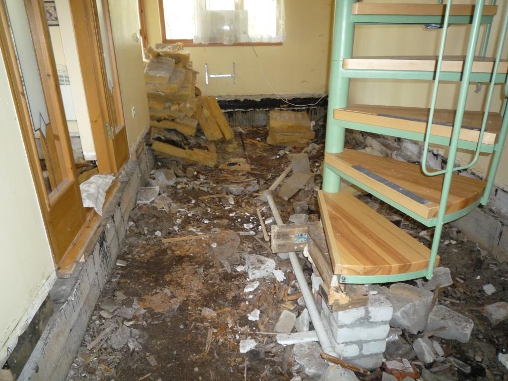 Liivaga või teise sobiva materjaliga täitmine, penoplasti paigaldamine, betoneerimine armeerimisega ja peale - puitpõrand. Torude hermeetilist kontrollida ja torud kinni ajada.