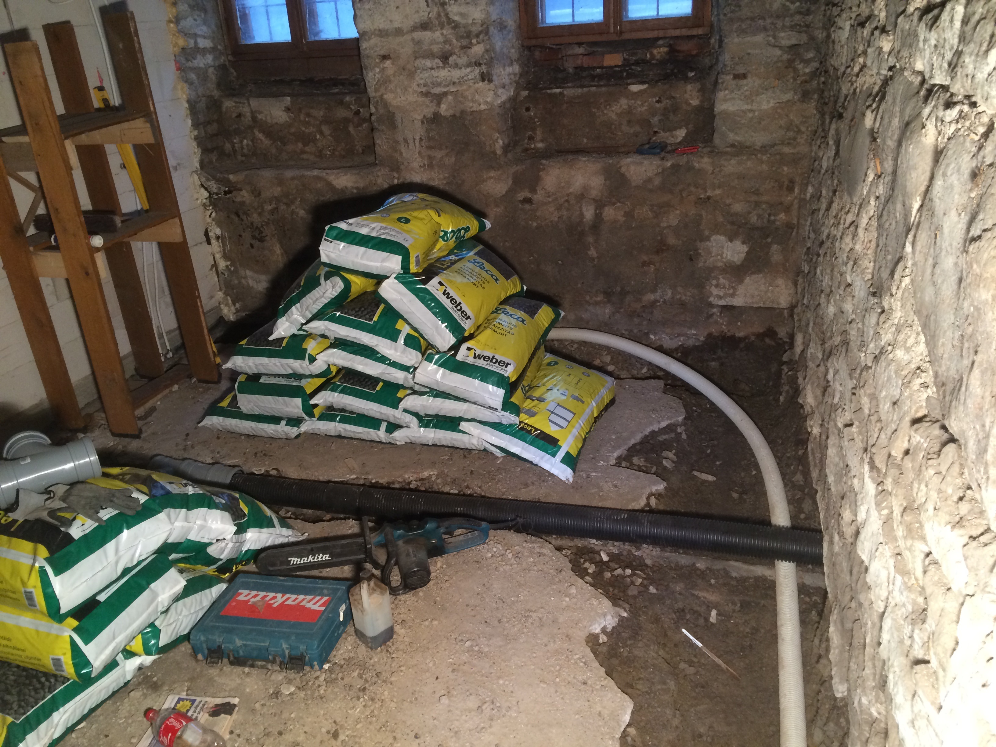 Kuna põrandale tekib vesi, tuleb paigaldada ka drenaažitoru kas siis ringina mööda sokliäärt või mõned torud diagonaalis ruumi keskele kus on äravool. Usun, et peaks tegema ka killustikupadja vms, et tekkiv vesi saaks liikuda dreaanižitoruni. Ei oska öelda kas peaks paigaldama aluspinnasele kanga, et killustik pinnasesse ei vajuks, või mitte. Tegemist kõva saviga. Ootan soovitusi. Ruumi keskel korstnajalg mille ümber tuleb ka ilmselt vöö valada.