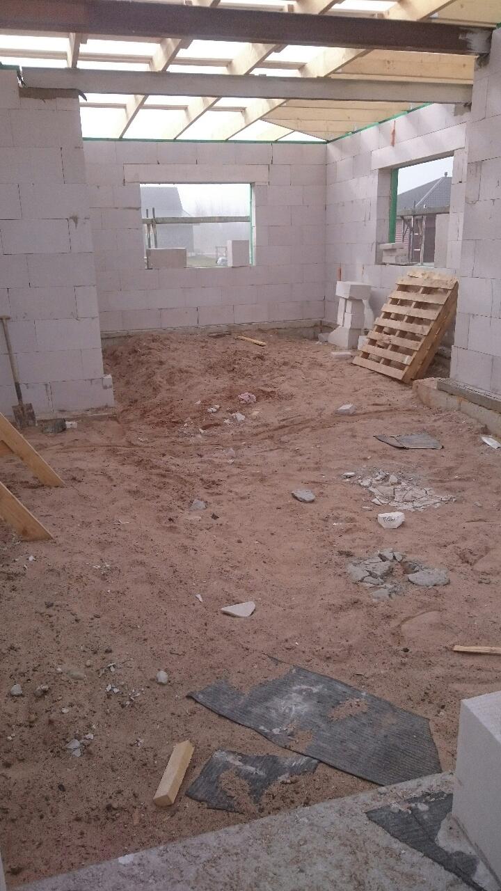 Vaja oleks teha: Liiva tasandamine (kõrgus peaks olema enamvähem õige praegu) penoplast 2x100mm, kile, armatuur, betoon koos lihvimisega. Võib pakkuda ka põrandakütte paigaldust koos survestamisega.