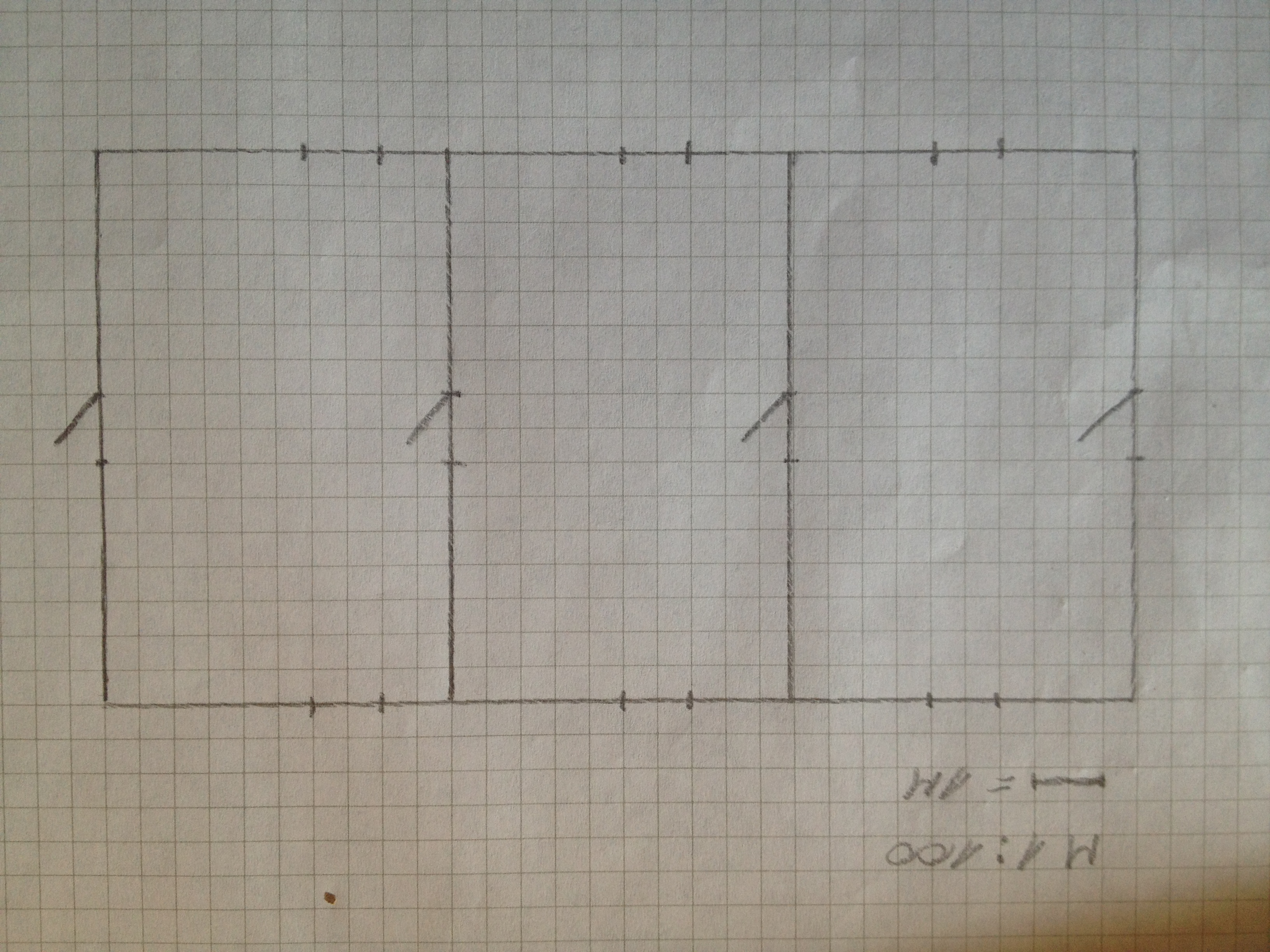 Ümarpalgist karp koos vahelae talade ja sarikatega mõõtmetega ca 8x15x2m. Jaotus pikki hoonet 5+5+5m, igas risti paiknevas seinas ukse ava 900x2050mm keskel (4tk), uksi pole vaja. Mõlemas külgseinas 3 akna ava 1200x1750mm, aknaid pole vaja. Viilkatus, viilu tipu kõrgus viimasest palgireast ca 3m. Sarikad pikkusega ca 5.7m.
