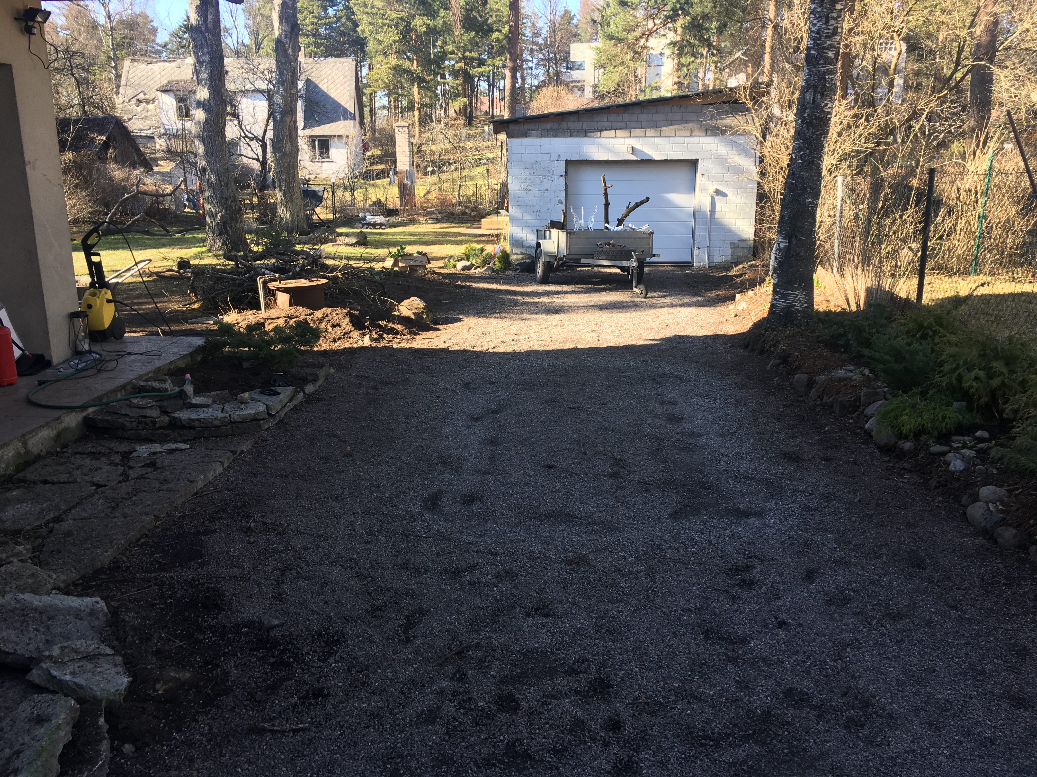 Koorimine, killustiku paigaldus ja tihendamine vastavalt vertikaalile. Killustiku hind vastavalt asukohale 15 eur tonn. Pinnase äravedu tasuta kui toome killustiku asemele, muidu 5 eur tonn.