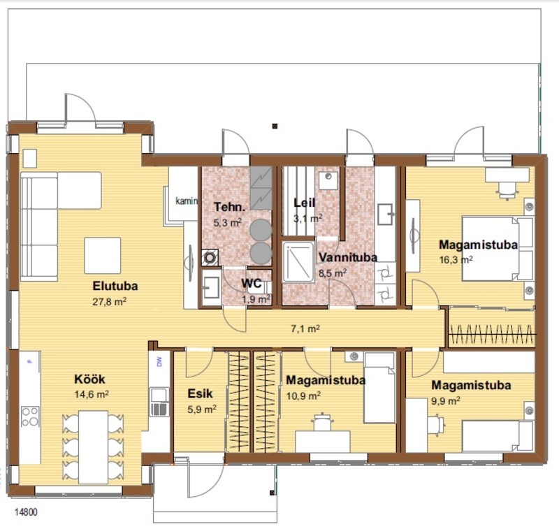 Hind sisaldab ilma viimistluseta maja paketti. Sisse arvestatud maaküte ning sisemiste eriosade rajamine koos kaevu tööde ning elektri töödega.