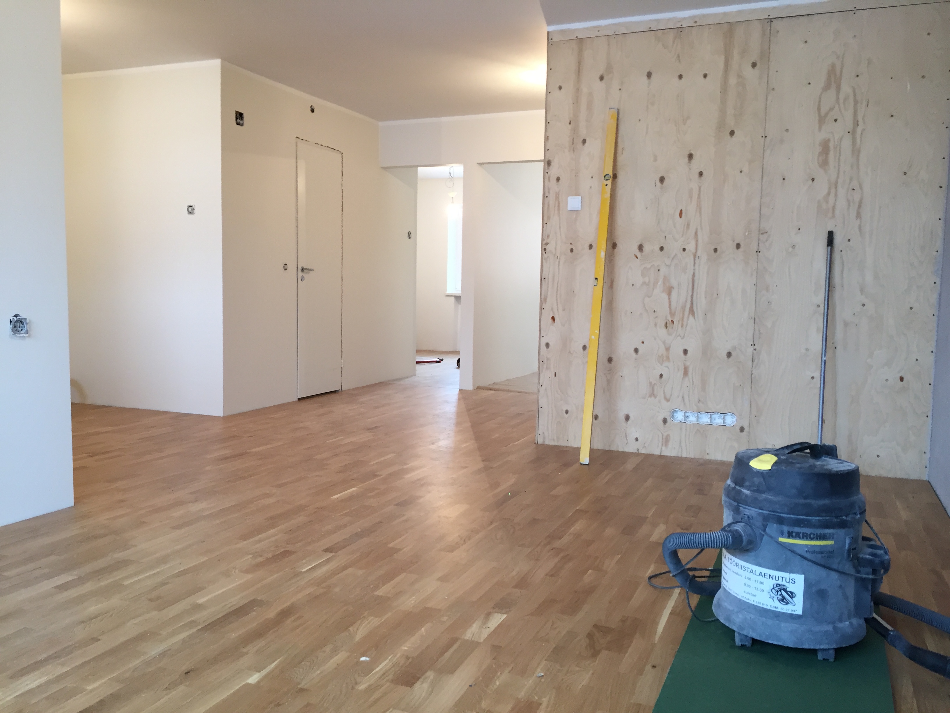 Korteris kolme siseukse paigaldus. Uste avad on järgnevad: