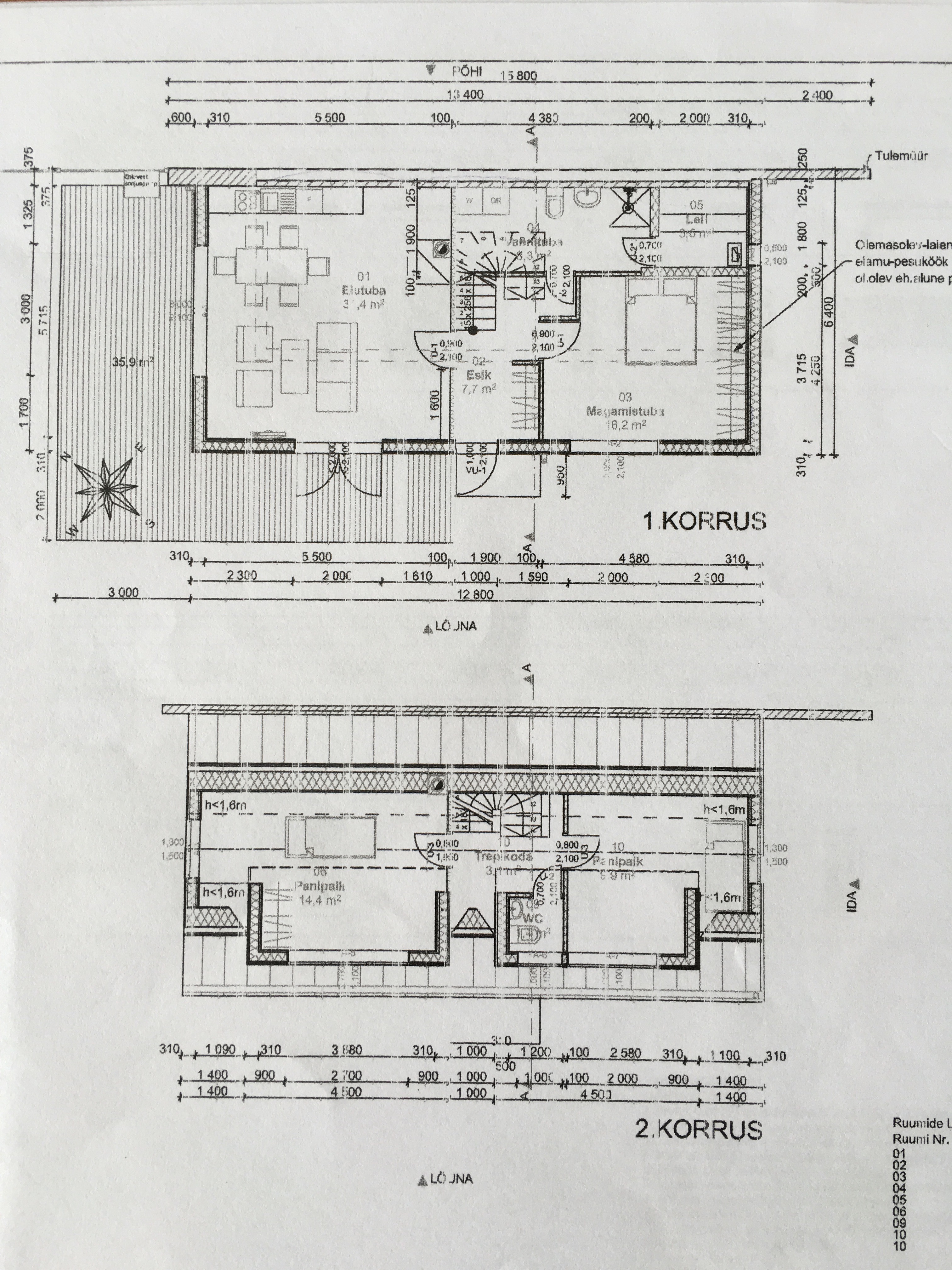 Elamu korruselisus 1,5 korrust. Puitkarkass. Tulemüüriga.