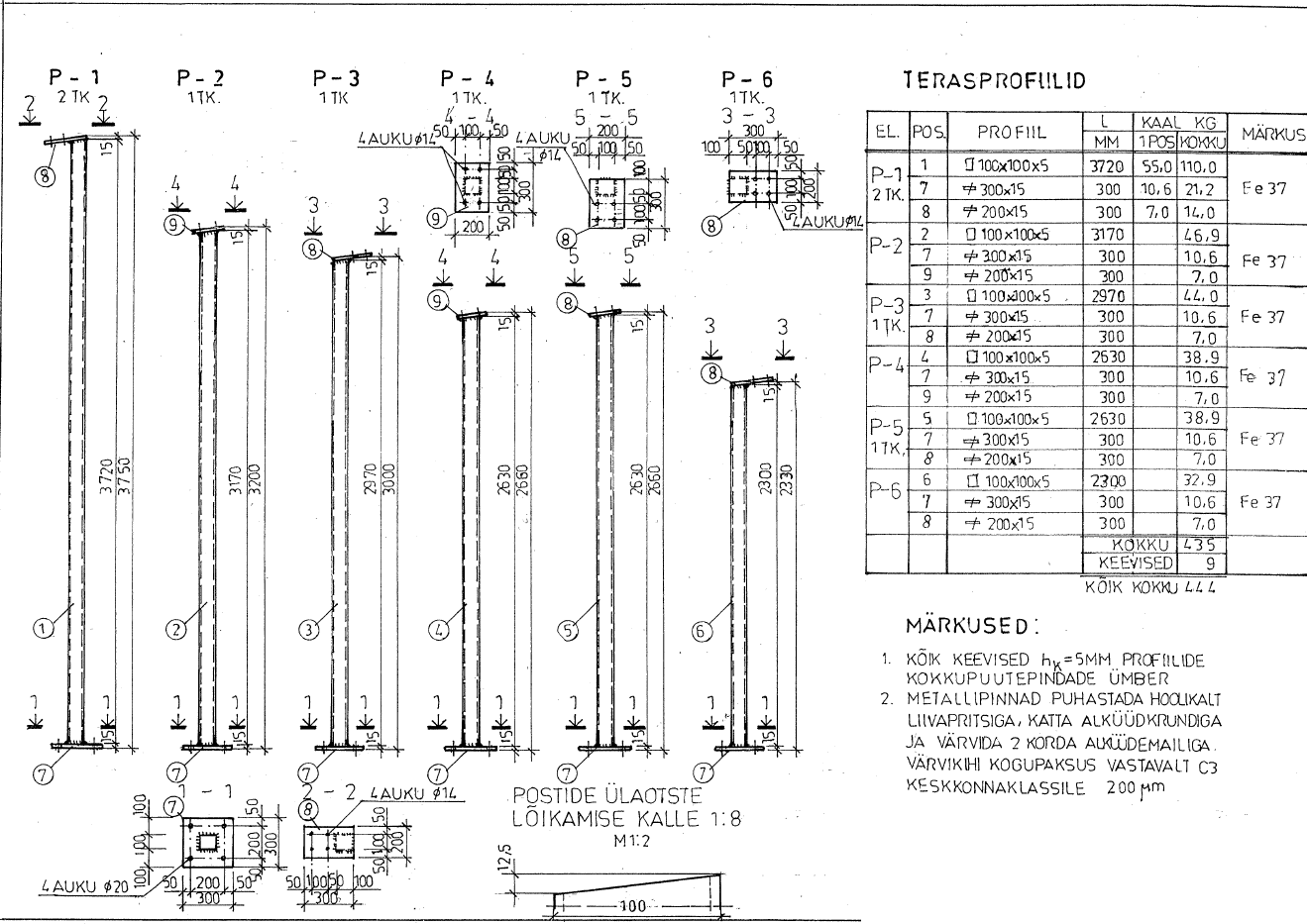 Kandevkonstruktsiooniks on kuumtsink teraspostid ja terastalad - tellija poolt, montaaz ehitaja poolt.