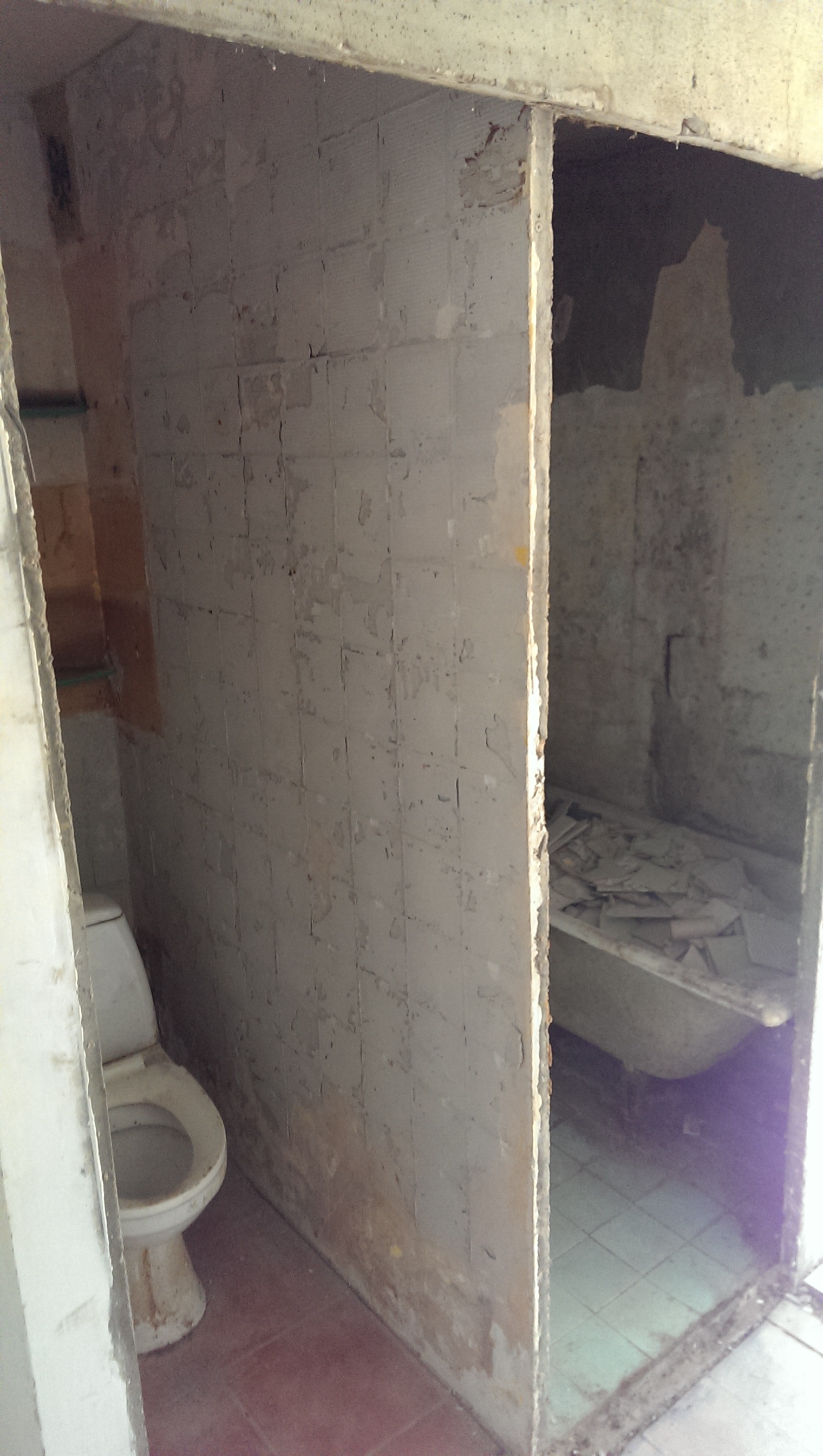 Praegune seisukord: Vanad plaadid jms seinast,põrandalt eemaldatud, vann eemaldatud