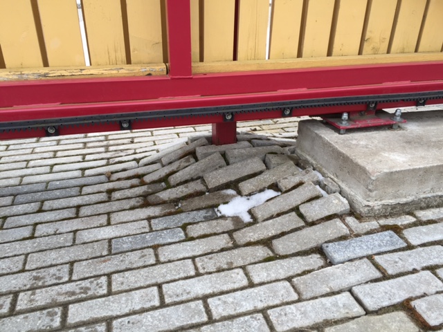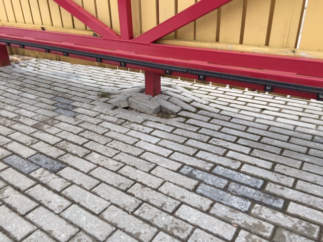 Rasketehnikaga võtame postid välja ja puurime korralikud augud. Liugvärava vundamenti ei puutu, kuna pole sellest juttu. Kiviparketi tagasi paigaldus max 4 posti ümber(ei näe rohkem piltidelt. Nivellitöö. Lgp. H