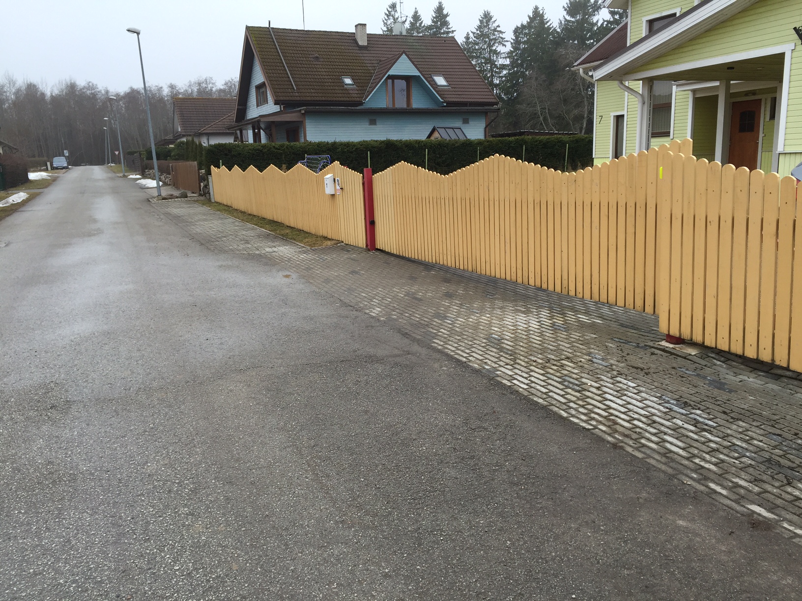 Puitpiirde demontaaž (11 paneeli), metallpostide demontaaž 11tk, väravapostide vundamendi demontaaž, metallpostide betoneerimine koos betooniga 11tk, väravapostide vundamendi betoneerimine koos betooniga (sügavus ca 1,2m), kiviparketi eemaldamine/taastamine väravapostide asukohas, puitpiirde montaaž (11 paneeli), jalgvärava + lukuvastuse paigaldus.