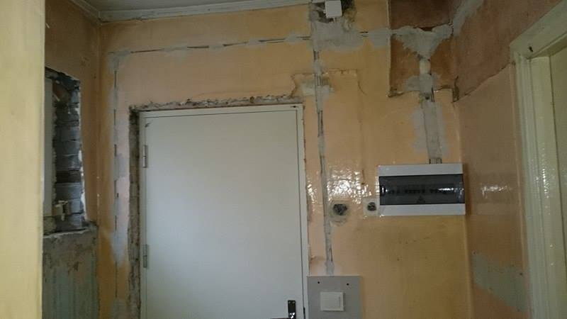 Korteris on kogu elektrisüsteem 2015. aastal vahetatud, ette on pandud uued aknad. Elektrikaablid on seintesse freesitud, pistikupesad ja lülitid on paigaldatud kipsplaadi tükkidele (vt pilte). Seintes on nn nõukaaegne kipsplaat. Seintele (otse seinale, mitte karkassile) tuleb täies mahus kipsplaat paigaldada, et seinad sirgemaks saada.
