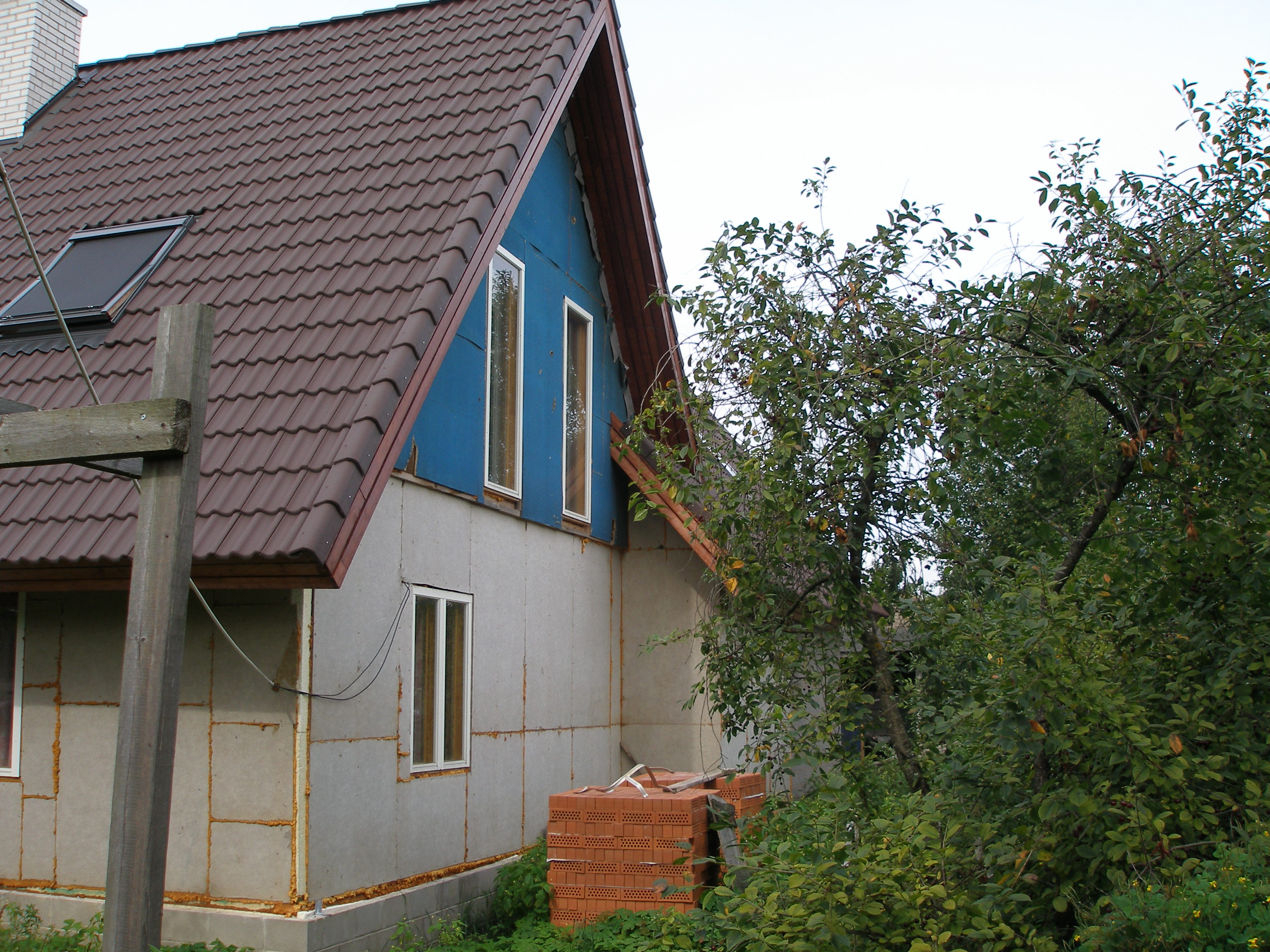 Eramu välisfassaadi ladumine puhta vuugiga 1. korruse ulatuses. Tellised Punane FAT 250x85x65 olemas ja ümber maja ootamas.