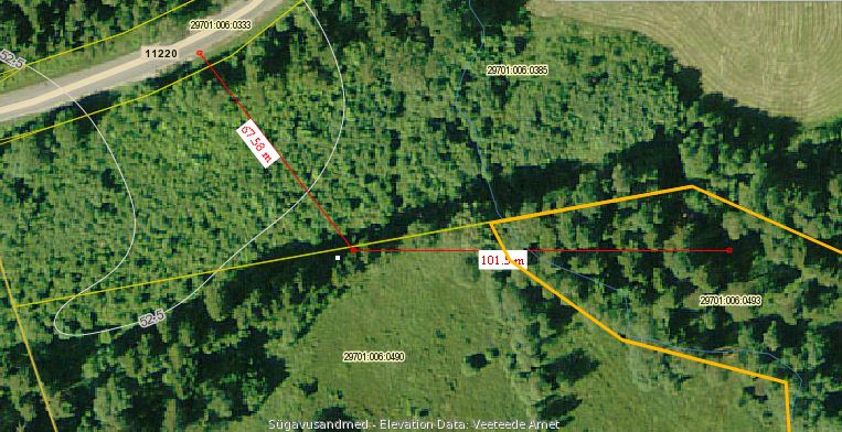 Vaja teha ca 170m sissesõidu teed. Sh mahasõit riigimaanteelt. Tee laius peab olema 3,5m, pinnast tuleb koorida umbes 30cm. Tee põhjaks võib kasutada paemurdu või midagi sarnast. Pealmine kiht võiks olla midagi peenemat. Veel peab ehitaja paigaldama 300mm 6m truubi ja 600mm 6meetrise truubi. Olukord: 60m mahavõetud madalat võsa, 50m põldu, 50m metsavaheteed. Puid maha võtta ei ole vaja.