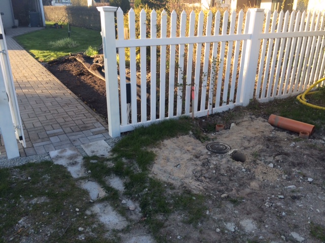 Käsitsi kraavi kaevamine ca 10-12 m pikk ja 1-1,5 m sügav, olemasoleva kanalisatsioonitorustiku ühendamine üldkanalisatsiooni kaevu. kraav tuleb kaevata olemasoleva aia alt läbi.
