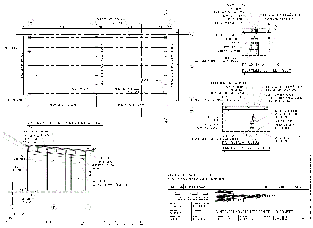 Ehitada tuleb ehitusjooniste alusel. Karkassi ehitus, OSB seintele ja lagedele ning katusele. Soojustus (kivivill) seintesse (20cm) ja lakke (25cm). Vintskapi katuse alla aluskatte paigaldus. Akende paigaldus. Vintskapi põskede välisviimistlus, 5cm peno + struktuurkrohv.