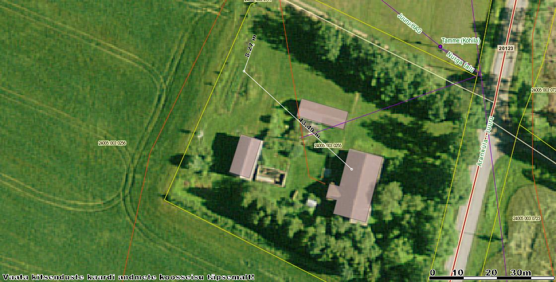 Trassi pikkuseks pakun 50 m. Trassi kulgemine tuleb täpsustada. Maapind ise peaks olema kerge kaevata. Takistuseks võib olla õue teealune osa ja vana paevundamendi jäänused.