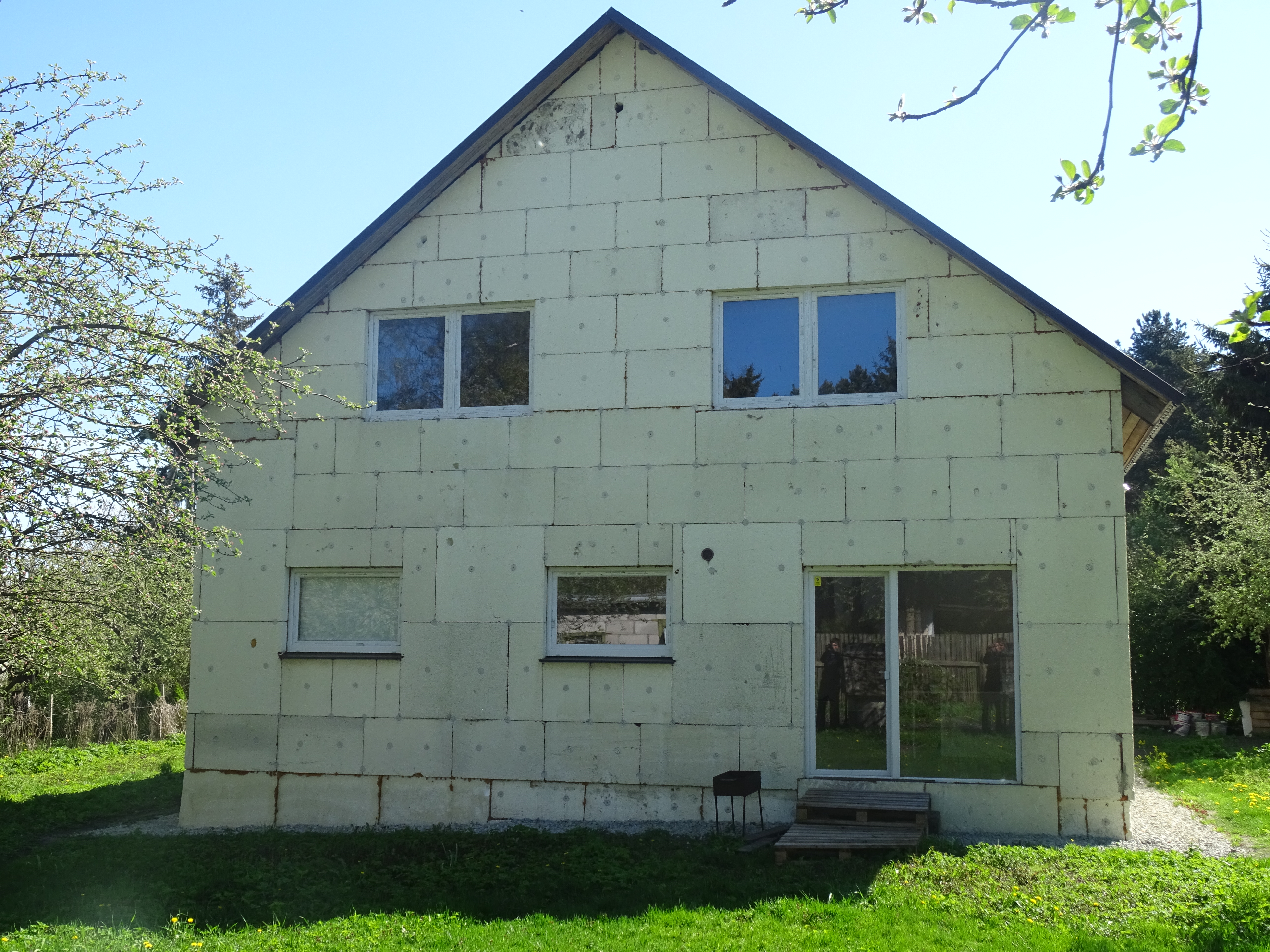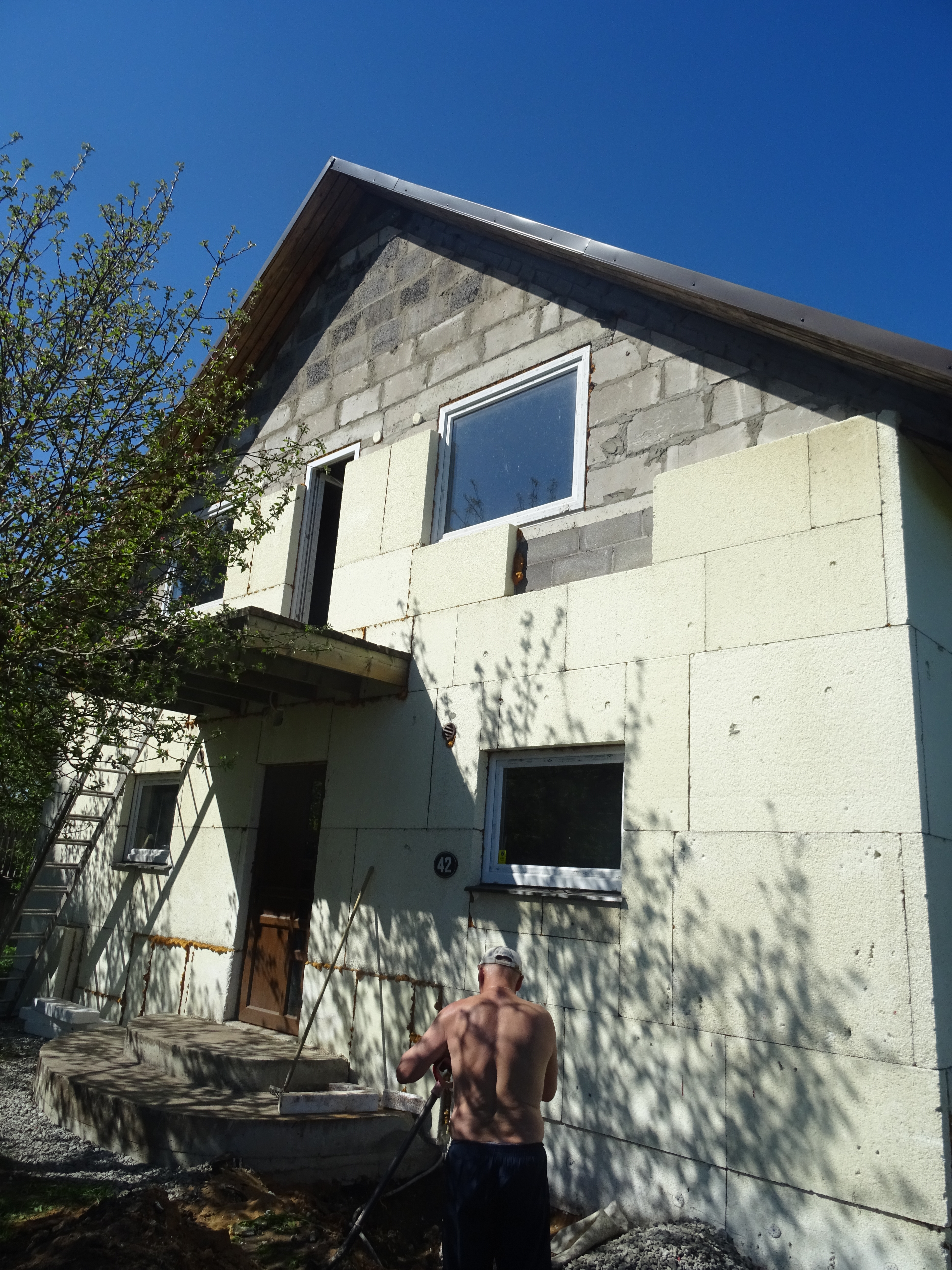 Majas on 100 mm penopolesterola. Peame panna veel 50 rohkem, et saada 150 mm ja seejärel sooritada viimistlus. Sa pead meeles pidama, et vana penopolesterol oli juba mõnda aega, kuid eksperdid, kes on uurinud ka teema öeldi, et võid jätta. On vaja puhastada vähe ja kohati veidi fix.
