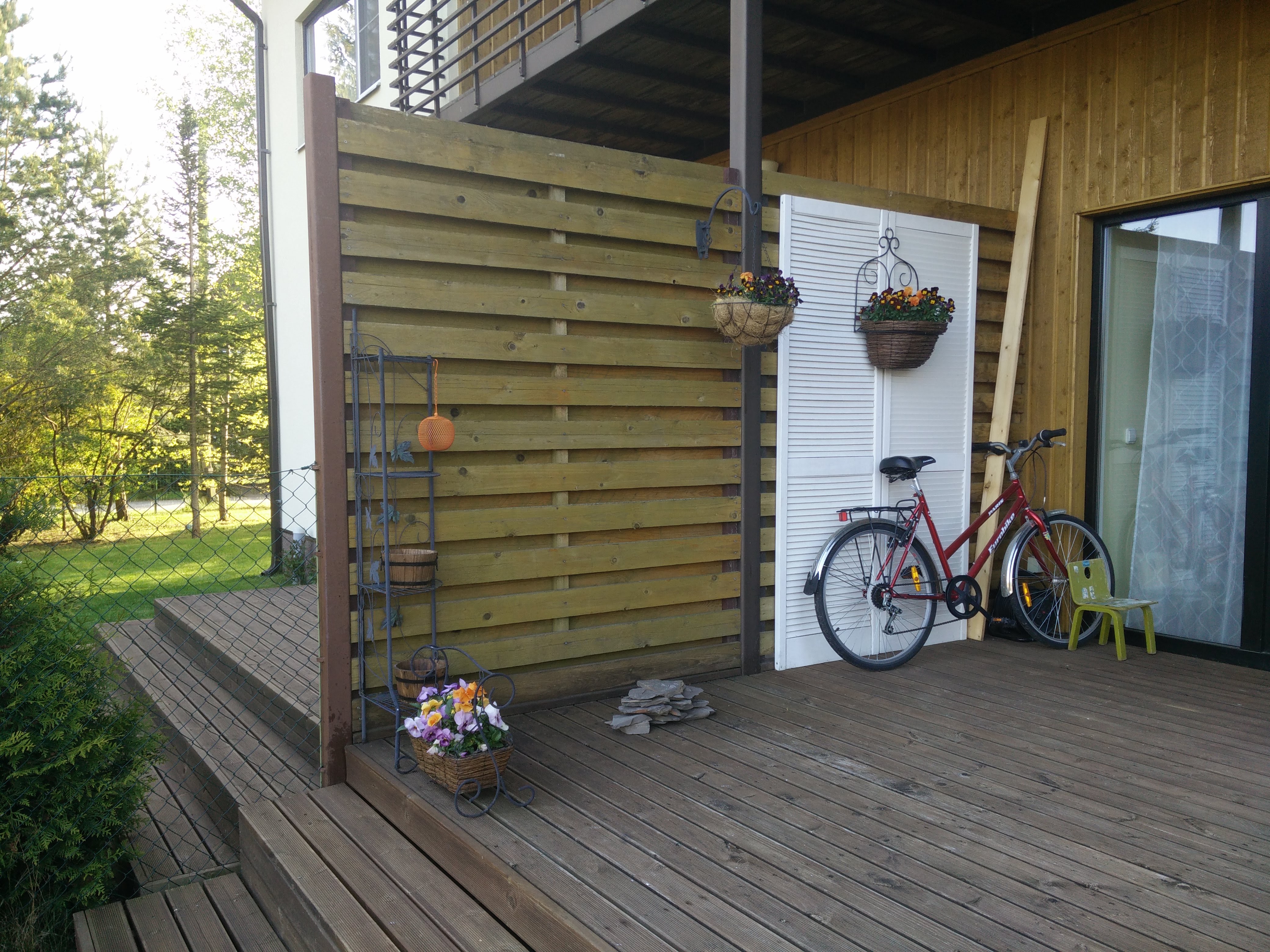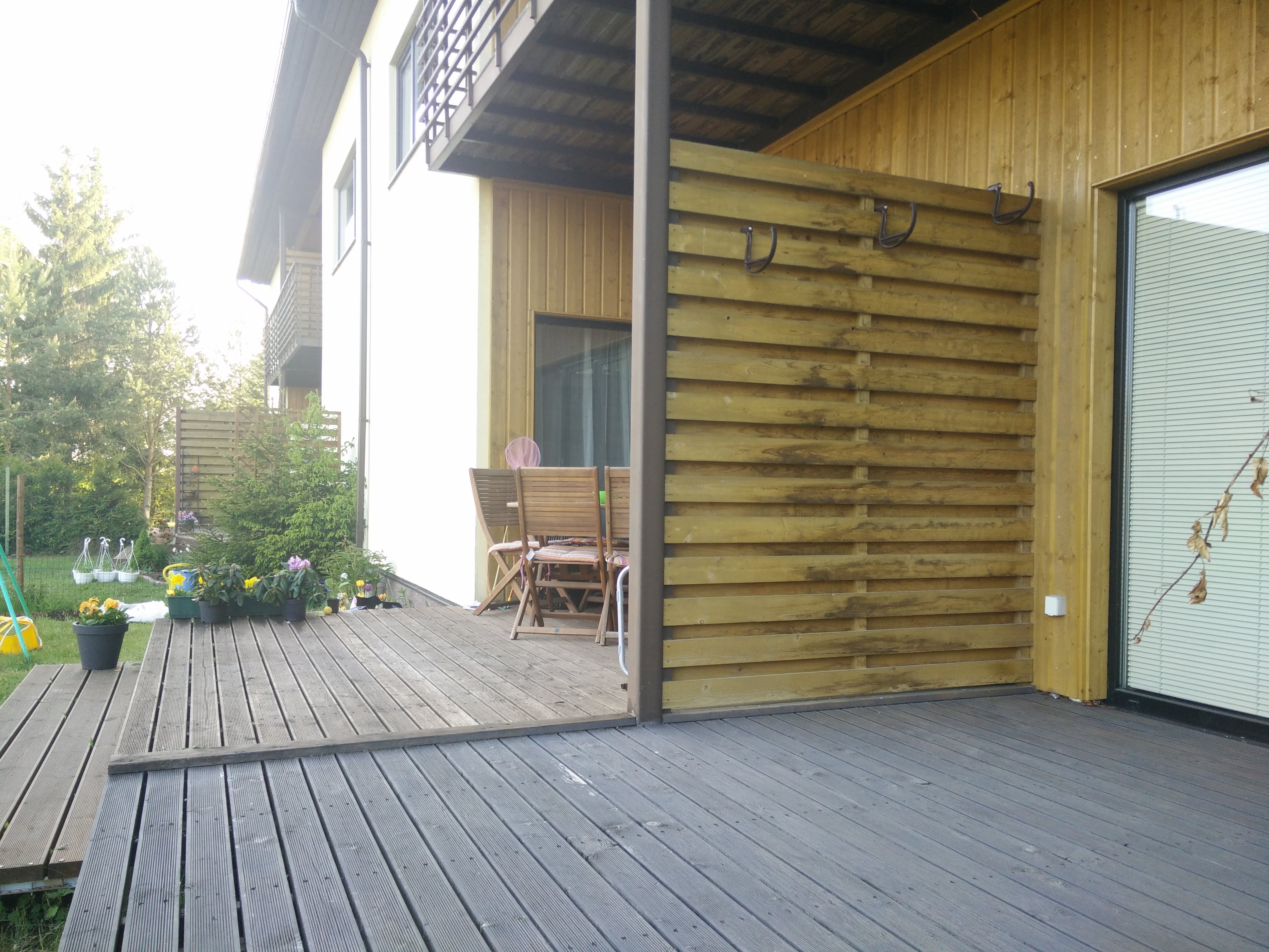Vaja ehitada ridaelamu terrassile lisavahesein. Pildil näha olemasolev ja soovitav vahesein (pilt tehtud naaberboksi terrassilt, kuhu see juba ehitatud).