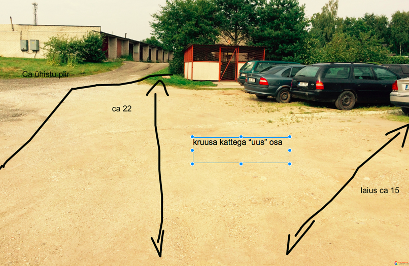 KÜ renoveeritav parkla ehk vana osa on ca 846 m2. Majaesine, kus on parkimiskohad ja sõidutee. Sõidutee osa on auklik, parndatud kuid ikka jälle auklik. Pinnast on vaja osaliselt tõsta/tasandada, kuna paar kanalisatsioonikaevu osa on kõrgemal, kui asfalt. Vajalik teha majapoolsesse serva kõnnitee, mis hetkel puudub.