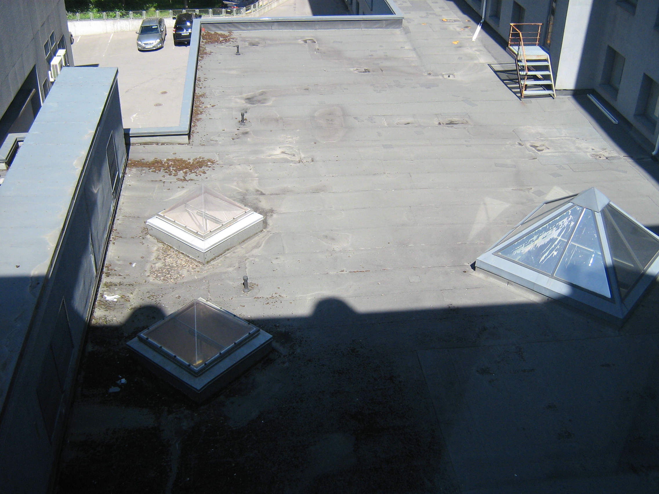Lamekatuse katte uuendamine. Pragude ja aukude täitmine, uue 2 x SBS-katte paigaldus. Katus on ca 750m2.Katuse saab liftiga läbi teise korruse.