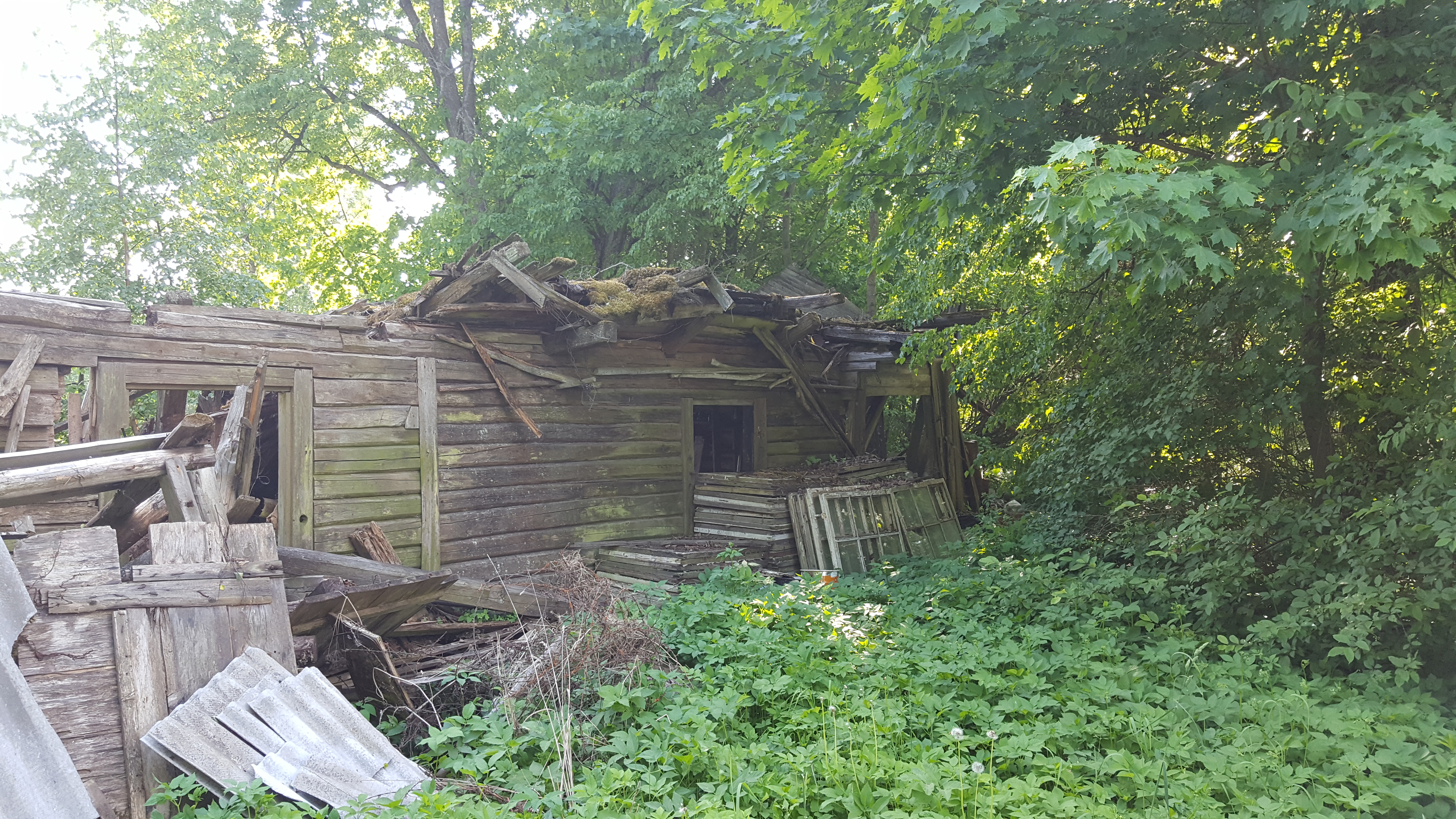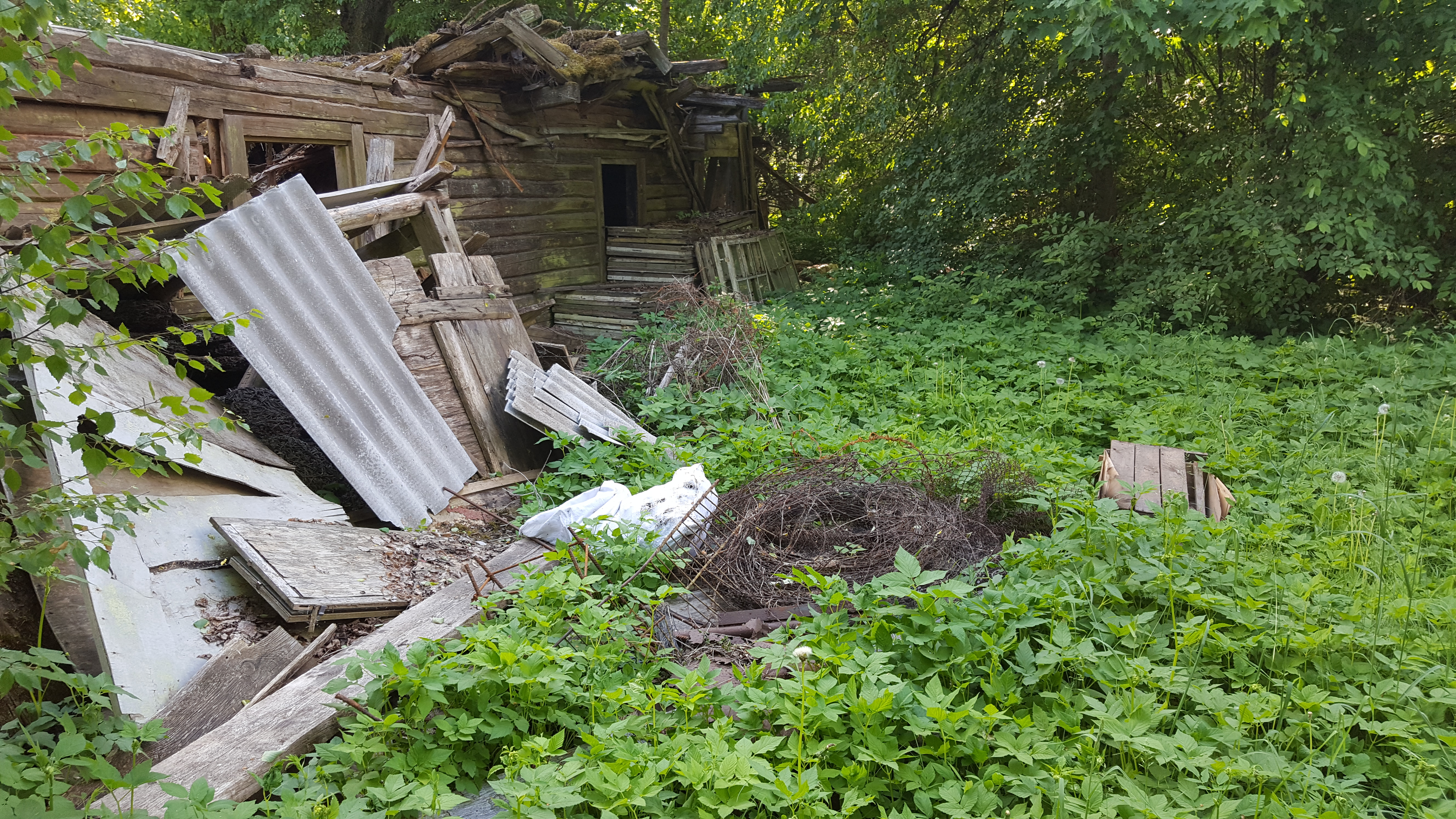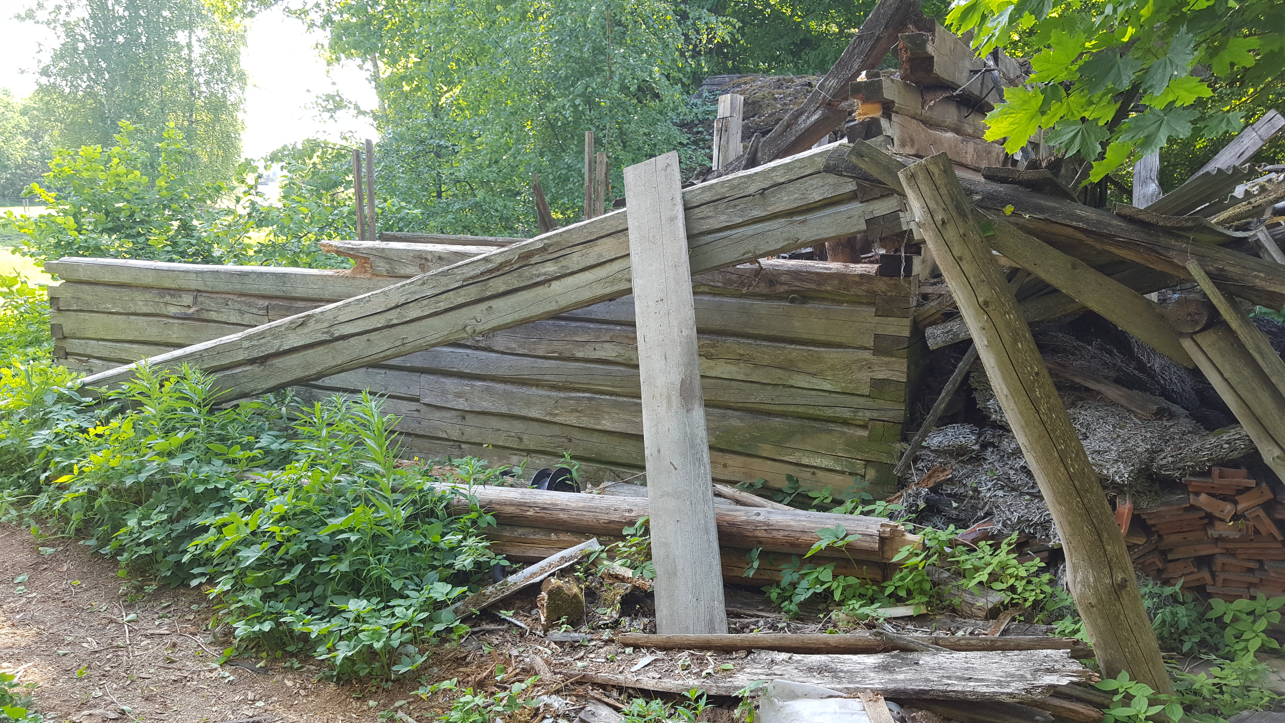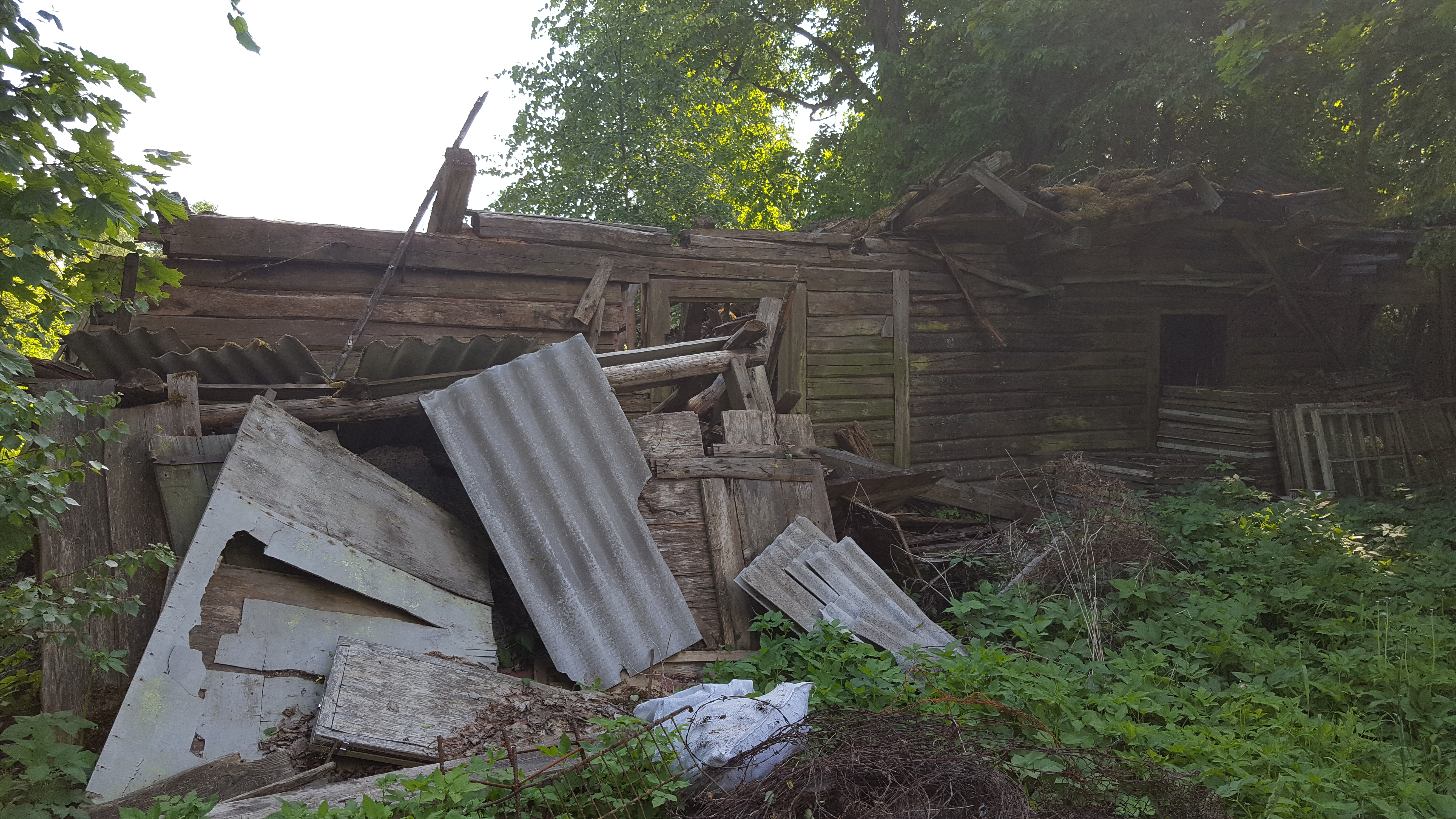 Katus sisse vajunud.palgist tappideda ühendused seintel.hoone sees samuti utiliseerimist vajavad kraami.seina ääres puidust raamidega aknad samuti utiliseerida.okastraat,vana eterniit.