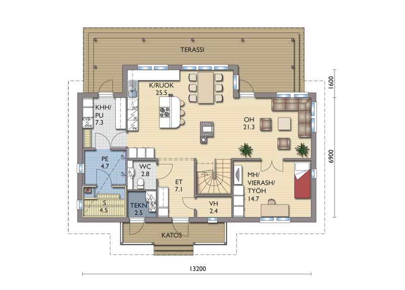 5 Tuba | Köök | Söögituba | Garderoob 3 | Majapidamisruum | Saun | Tehniline ruum |
