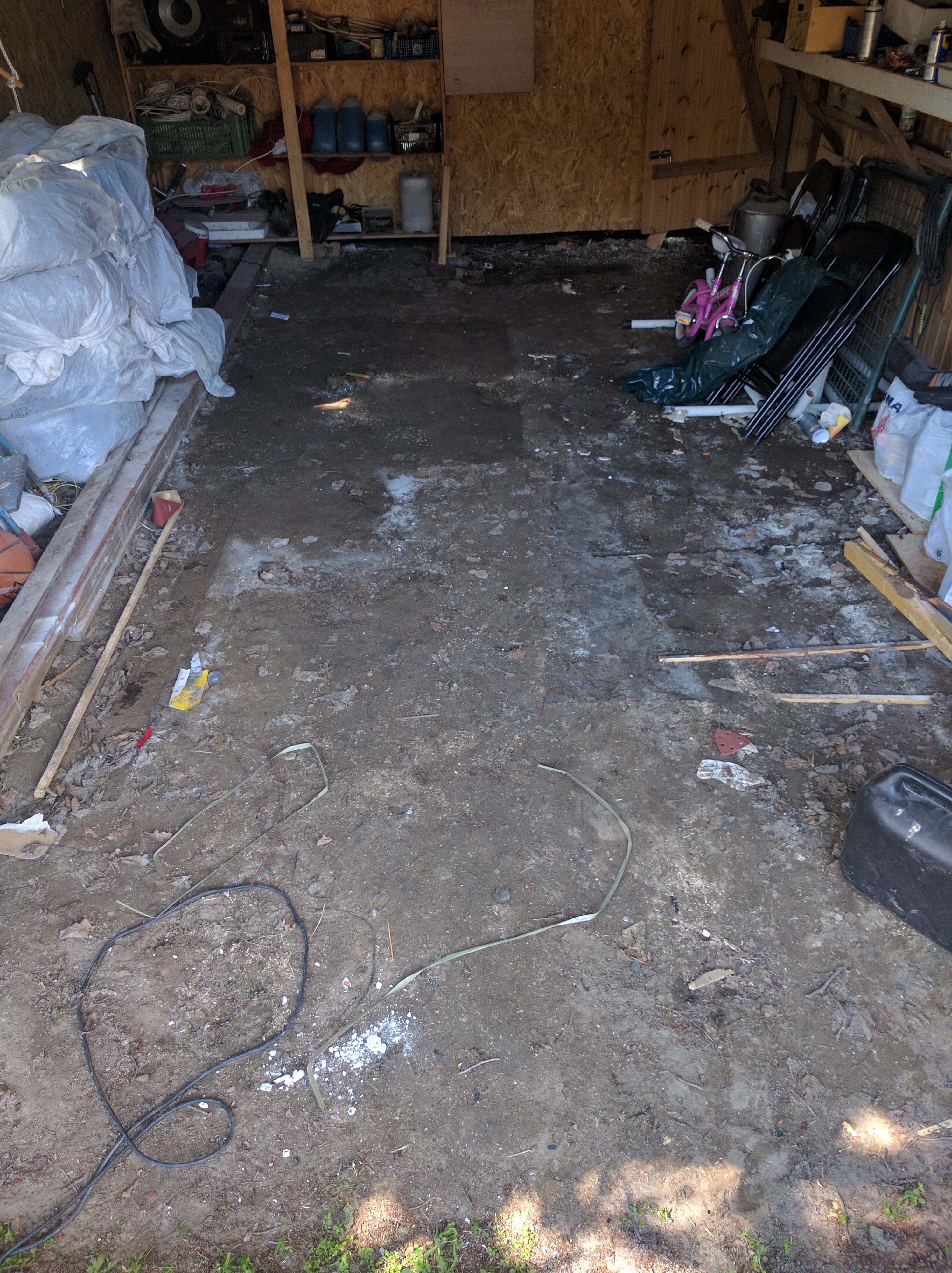 Garaaži betoonpõranda ehitus. Täna on garaažis muldpõrand, st mullakiht tuleks koorida ning aeda hunnikusse ladustada. Põranda ääred piirata (ca 4cm kõrgusel praegusest pinnast on 100x100 puittalad). Seejärel betoonpõrand valada (alla ilmselt vajalik killustik). Pindala kokku ca 25 m2. Garaaži põranda osa teen enne ise täiesti tühjaks.