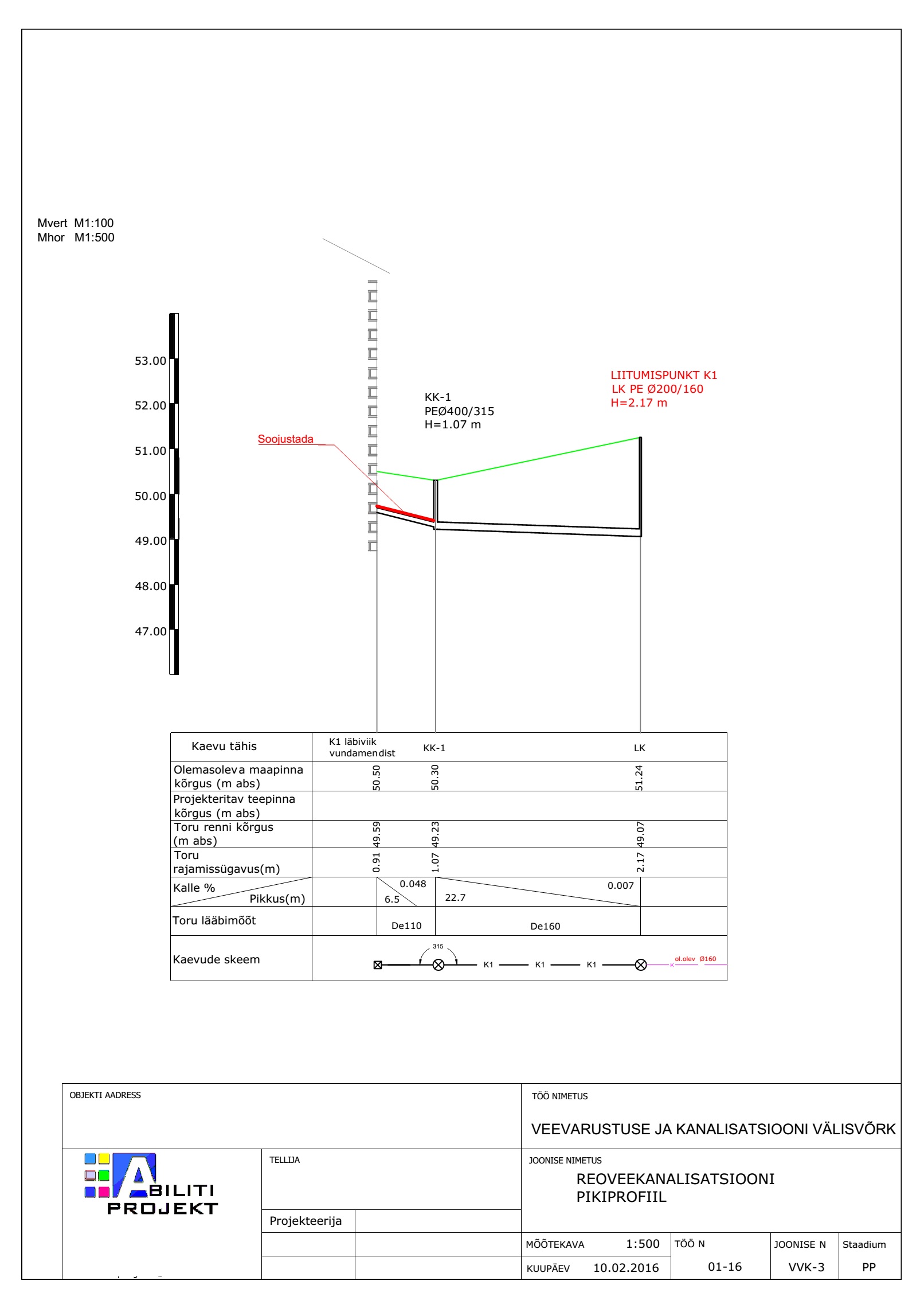 Juurde lisatud välisvõrkude asendiplaan ja profiilid.