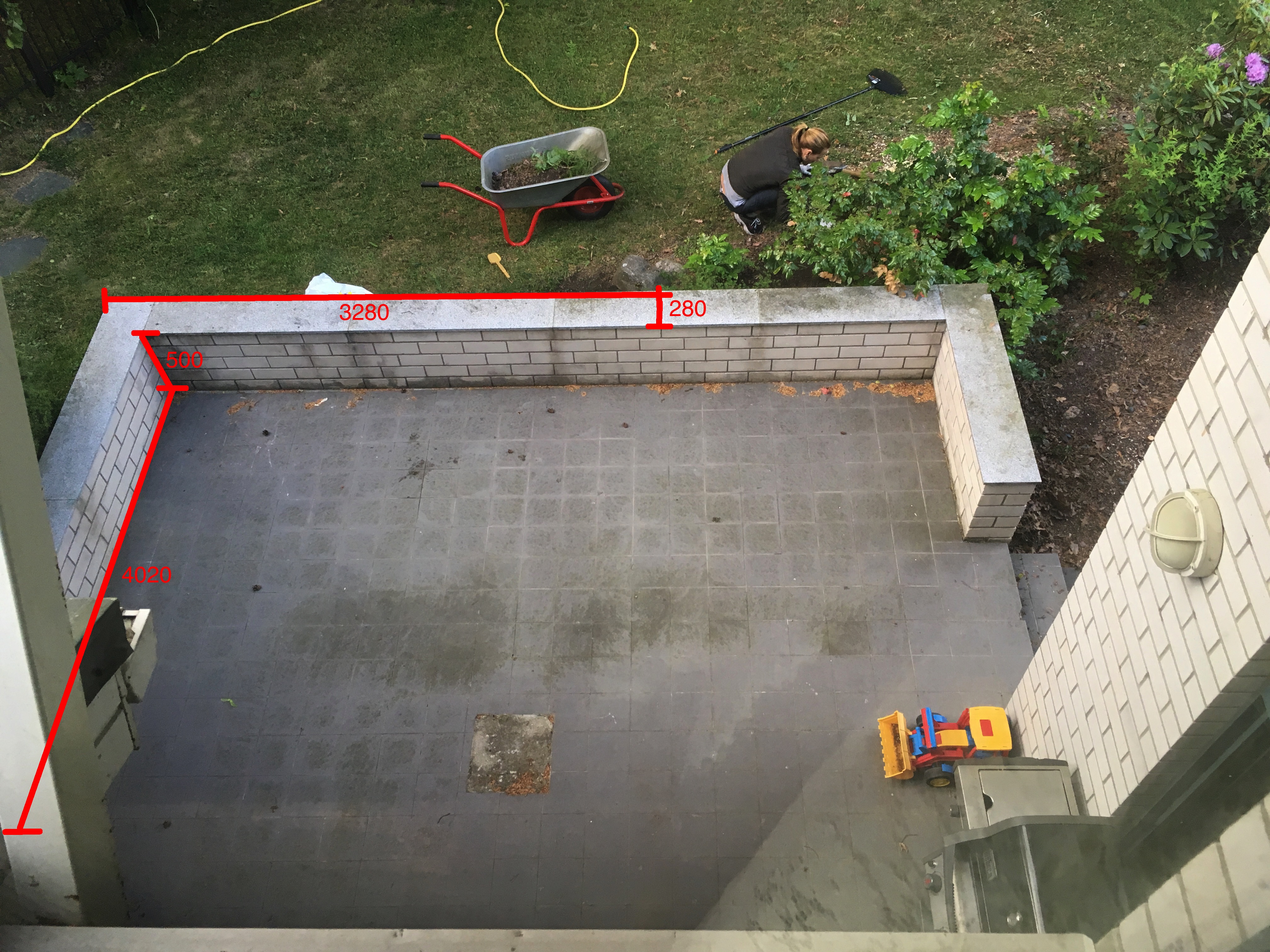 Soov oleks lasta lammutada osaliselt terrassi tellistest piire. Piiret tarvis lammutada kokku 7,3m. Piirde kõrgus 0,5m ja laius 0,28m.