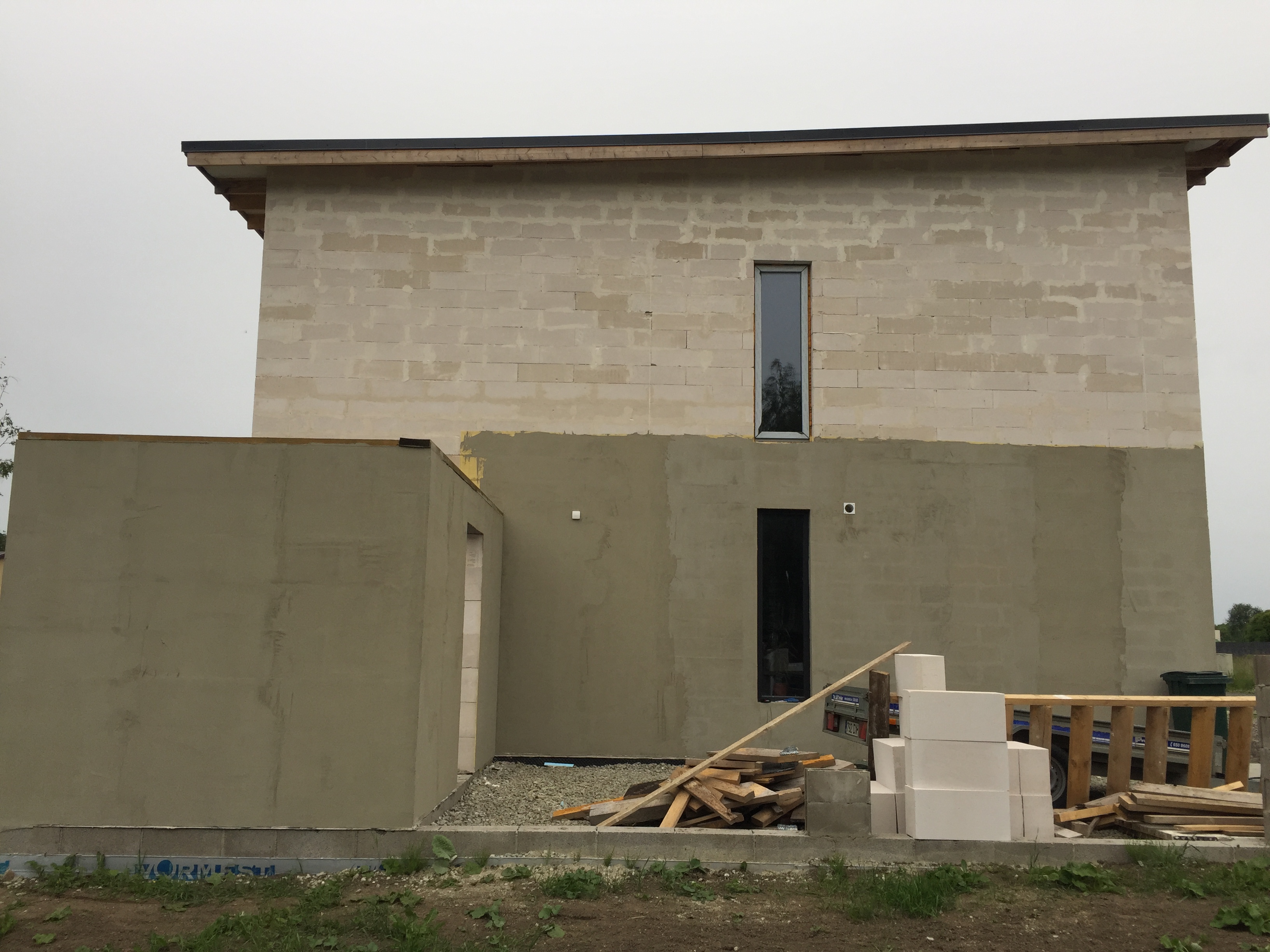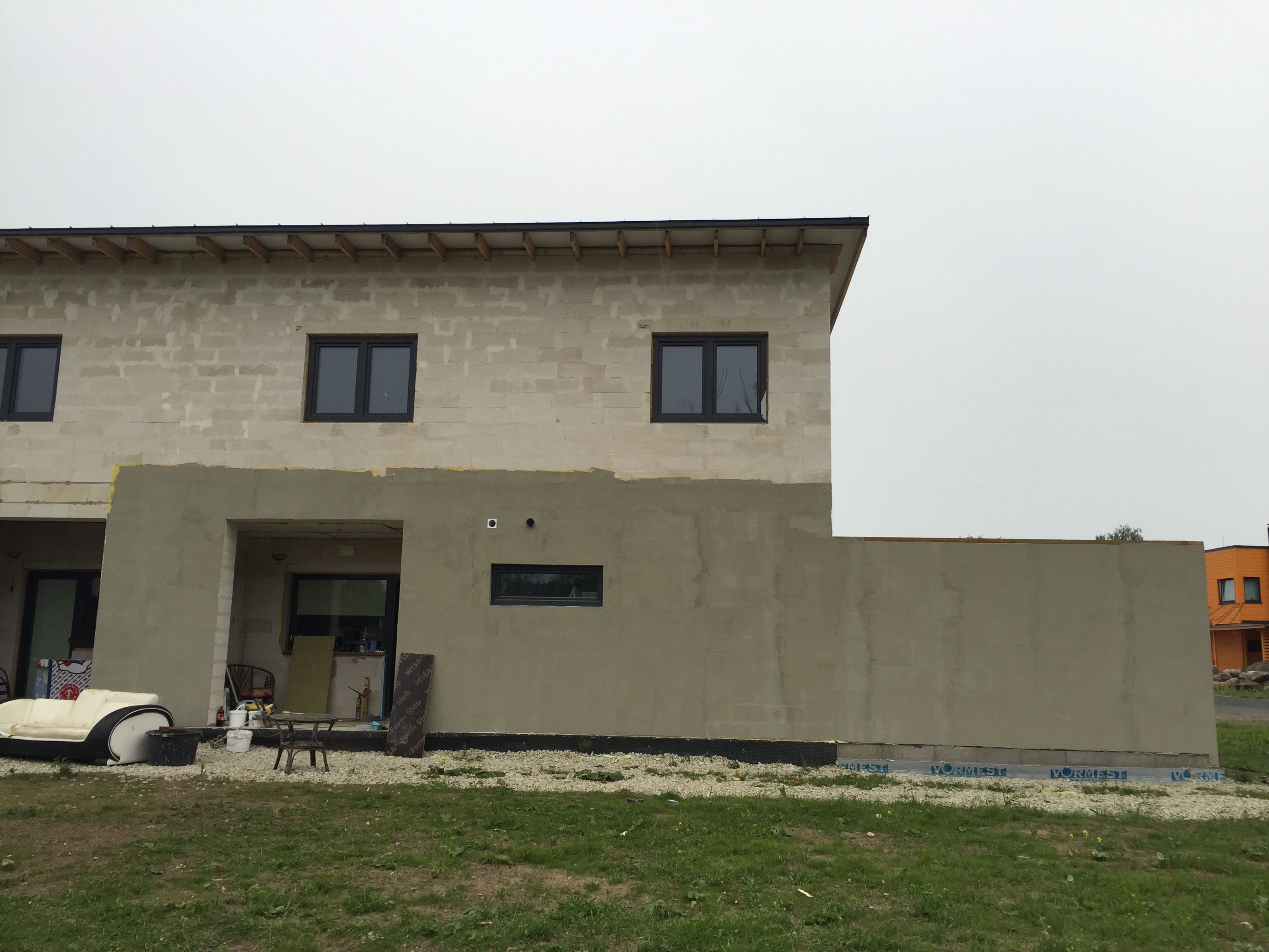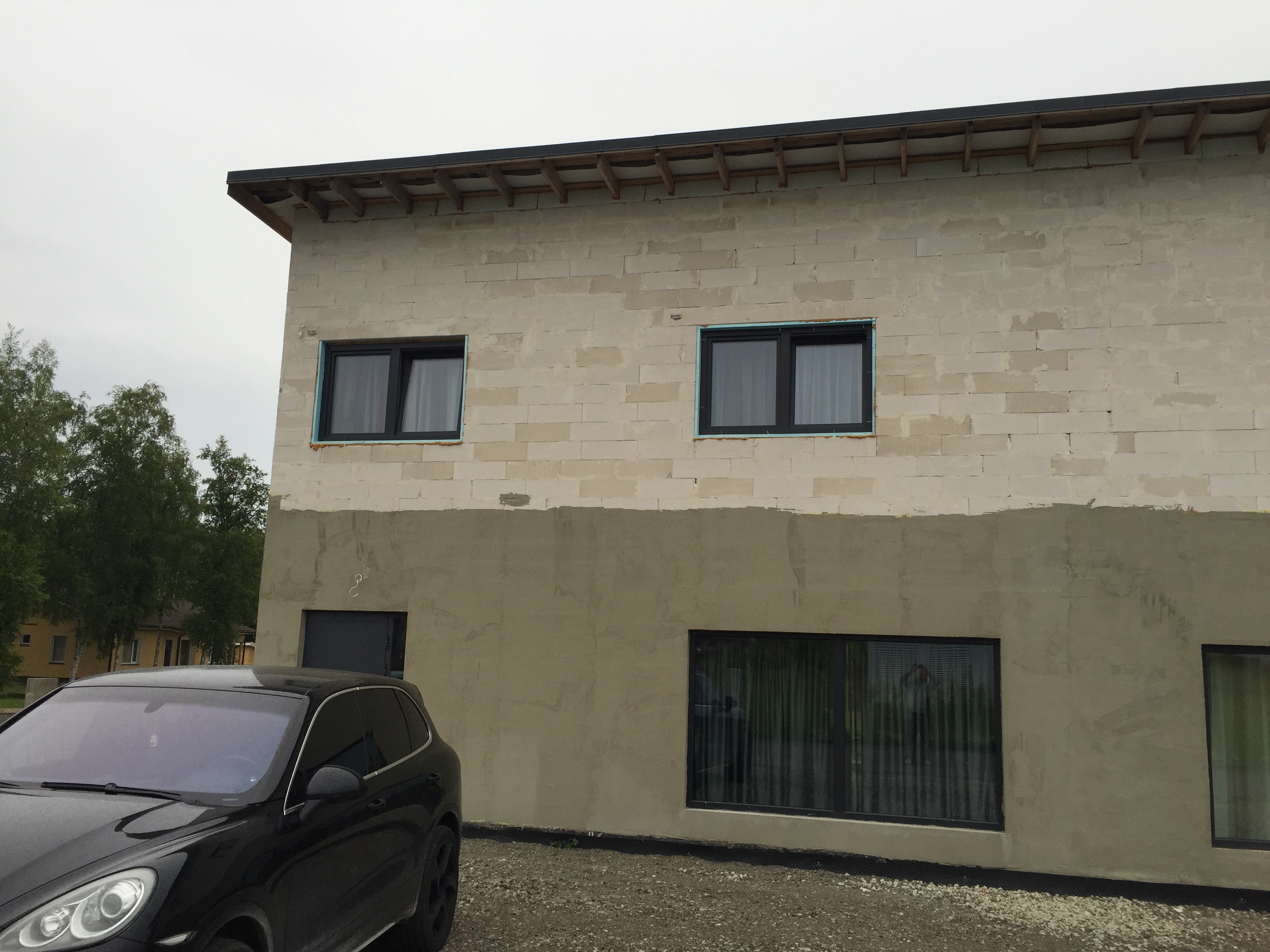 paarismaja pikkus 19m, laius 9 m, kõrgus 6,5-7 m. Oleks vaja teha ainult üks pool, eek pool maja. Osaliselt panna võrk(esimene korrus tehud), armeerimissegu, krunt ning krohv.