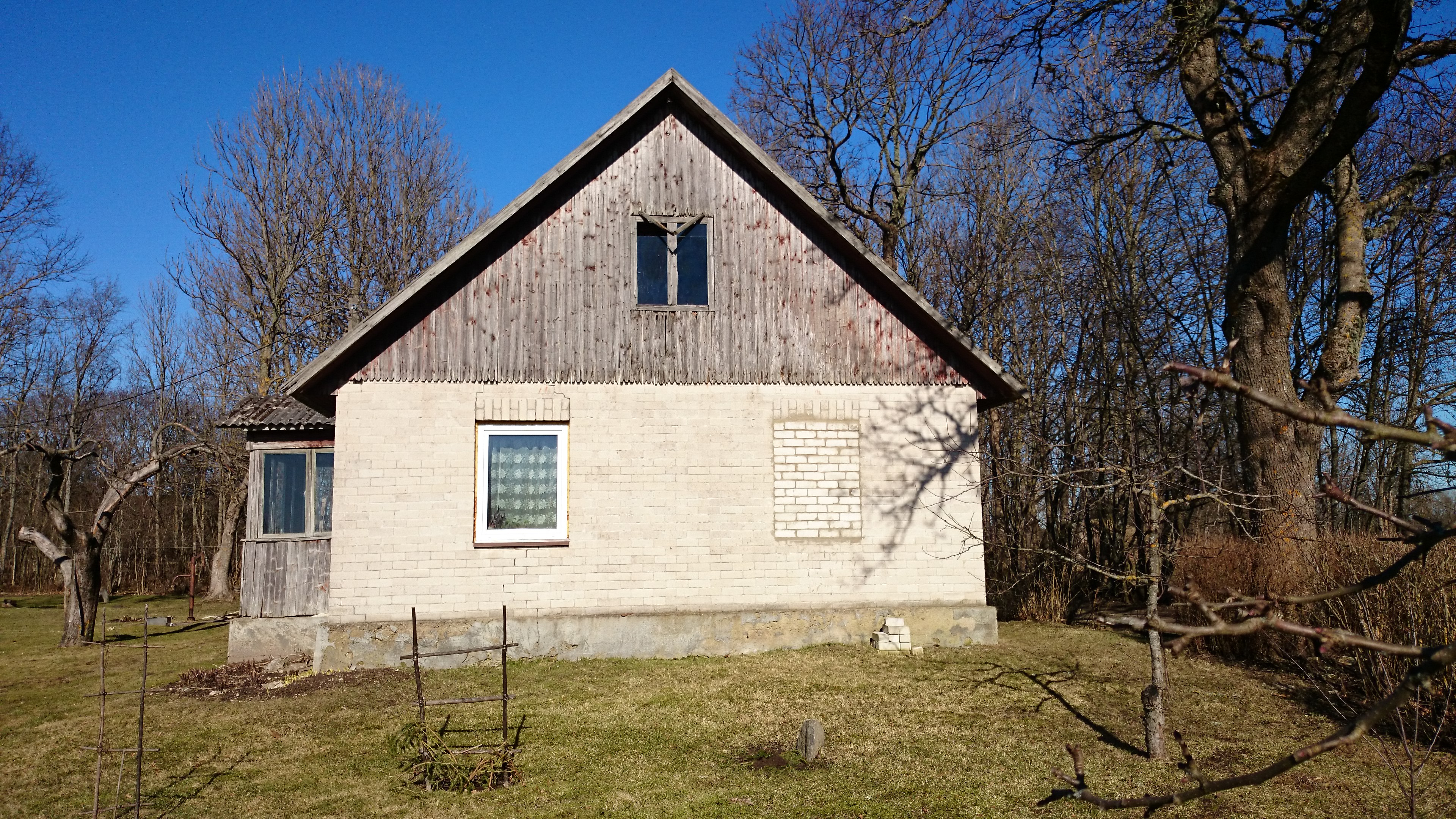 Mõte on maja soojustada 100 villa + tuuletõke + laudis. Pööningul laepealselt saepuru eemaldada ja asendada villaga ning katta saepuruplaadiga, et oleks võimalik peal kõndida. Aknad tuleb ilmselt väljapoole tõsta, Veranda kaob ära, asendub terrassiga. Otsaseinas tuleb üks kinnimüüritud aken taas avada ja aken paigaldada. Aken on olemas.