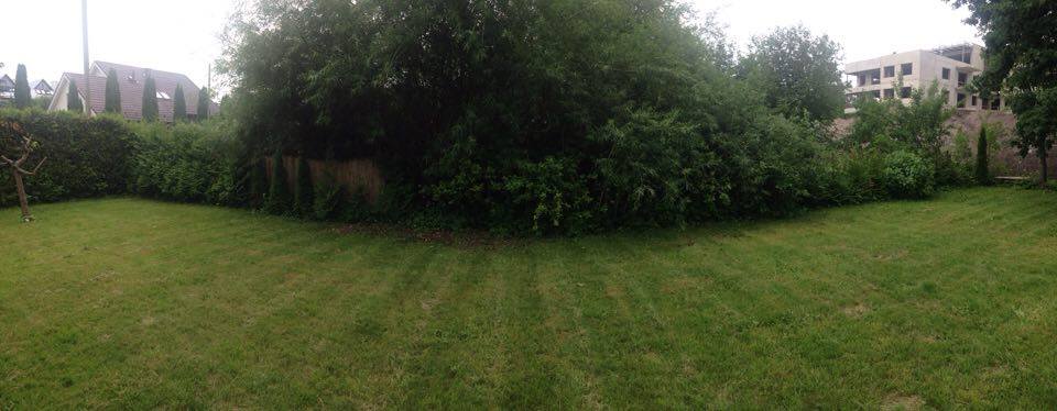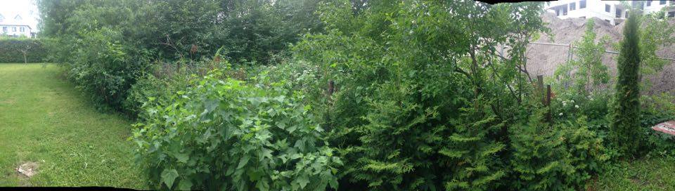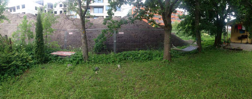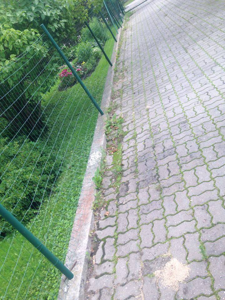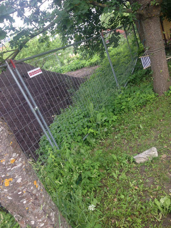1. külg - 28m, eemaldada on vaja praegune vana roostes traataed, postid otse pinnases ja ära vajunud. Krundi siseküljel noor elupuuhekk, välisküljel võsa (riigimaa). Pinnas pehme ja niiske liiva ning mulla segu. Uus aed kaetud tihedalt lippidega.