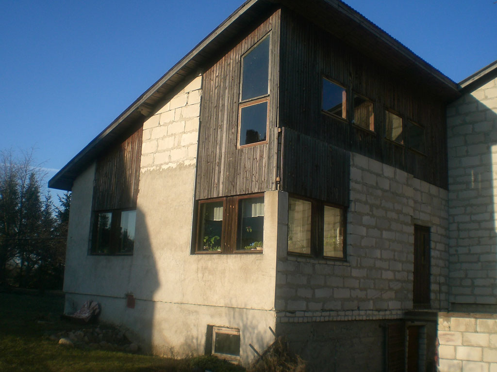 älisfassaad osaliselt puidust 70 m2 ning ülejäänud tuhakivist. koik soojustada. Kiviosa kindlasti 150 penoplastiga ja üle krohvida. Puitosa soojustamine tegija otsustada, kuid ka üle lüüa uuesti puiliistudega. Kiviosa valge krohviga. Kivipinda u. 300 m2