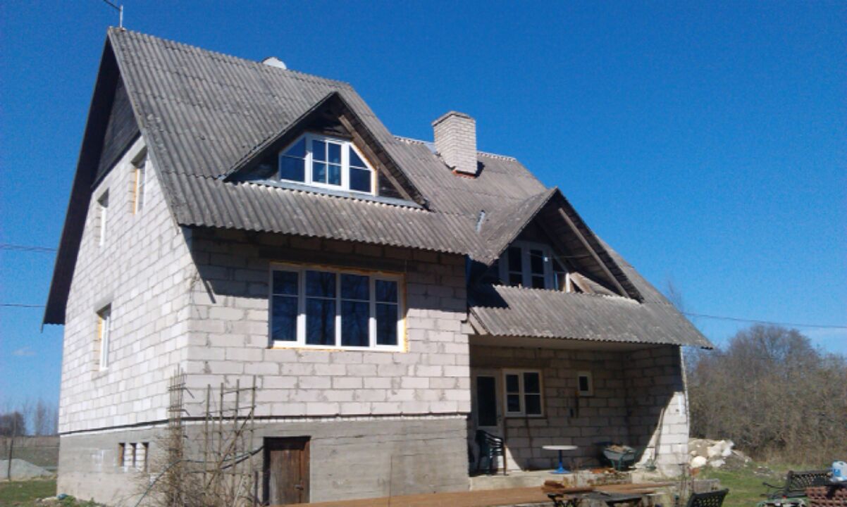7. Uue eterniidi paigaldus (koos vihmaveesüsteemiga, lumetõke maja ette välisukse ja garaaziukse kohale)