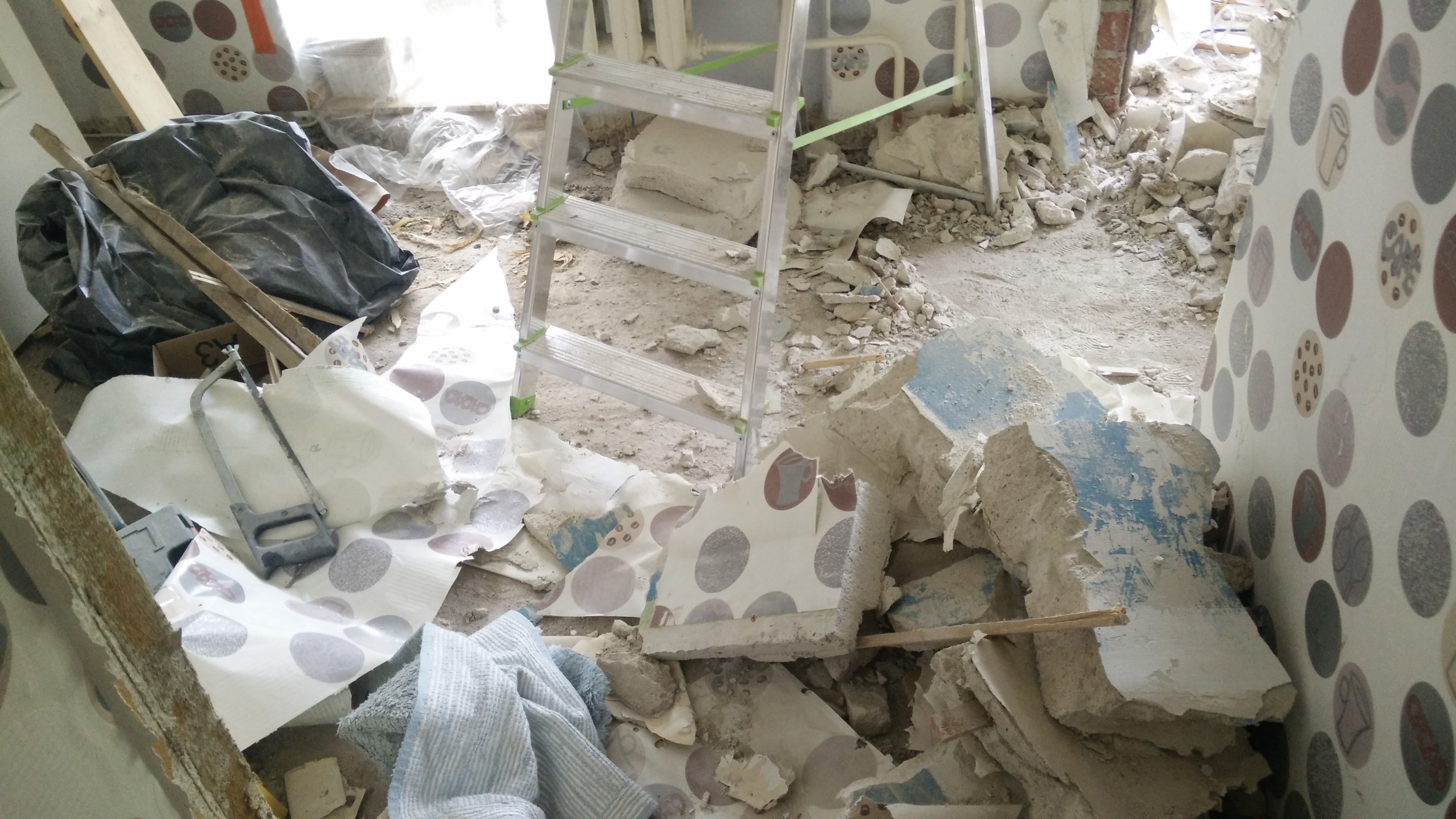 Vaheseinte eemaldamisel tekkinud ehitussodi likvideerimine. Korter asub 4. korrusel.