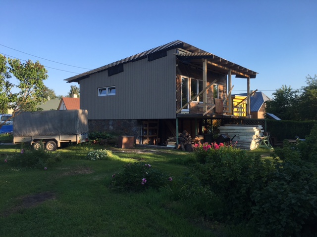 Eramajale valtsplekk-katuse paigaldus. Katuse pindala 100m2.Katuse kalle on 6 kraadi,